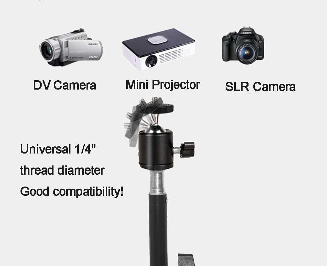 Adjustable Height: The Height Of The Tripod Is Adjustable From 46-100 Cm (18-39 Inches). Three Sturdy Legs Are Inclined Outwards To Maximize Stability And Can Be Adjusted To The Height You Need 360 Rotatable Head: 360 Rotating Head To Help You Get The Ideal Angle. 1/4 Screws Can Fit Almost All Mini Projector, Dlp Projector, Digital Camera, Camcorder,Compact Cameras, Webcams,Etc Portable Tripod Projector Stand: It Can Be Folded Into A Portable Size And Weighs Only 1.1 Lbs. It Is Very Suitable For Offices, Classrooms, Presentations, Travel, Live Broadcasts, Commercial Exhibitions. Easy To Assemble And Set Up! Bearing Capacity : The Load Capacity Of The Mini Projector Stand Does Not Exceed 4 Pounds, And The Tripod Mount Is Mainly Used For Light Equipment. Not Recommended For Large And Heavy Projection Equipment Tripod Chassis Structure: In Order To Consider The Safety Of Media Equipment. The Rugged Tripod Structure With A Load Capacity Of 8 Pounds Is Easy To Install And Portable. Technical Specs: Material: Pet Knob And Steel Tubes Color: Black Safety Load: 4.4 Lbs/2Kg Length: 15-39Inch/38-100Cm Head Rotation: 360 Package Contents Tripod Standx1 Tripod Mini Ball Head Smartphone Holder Adapterx1
