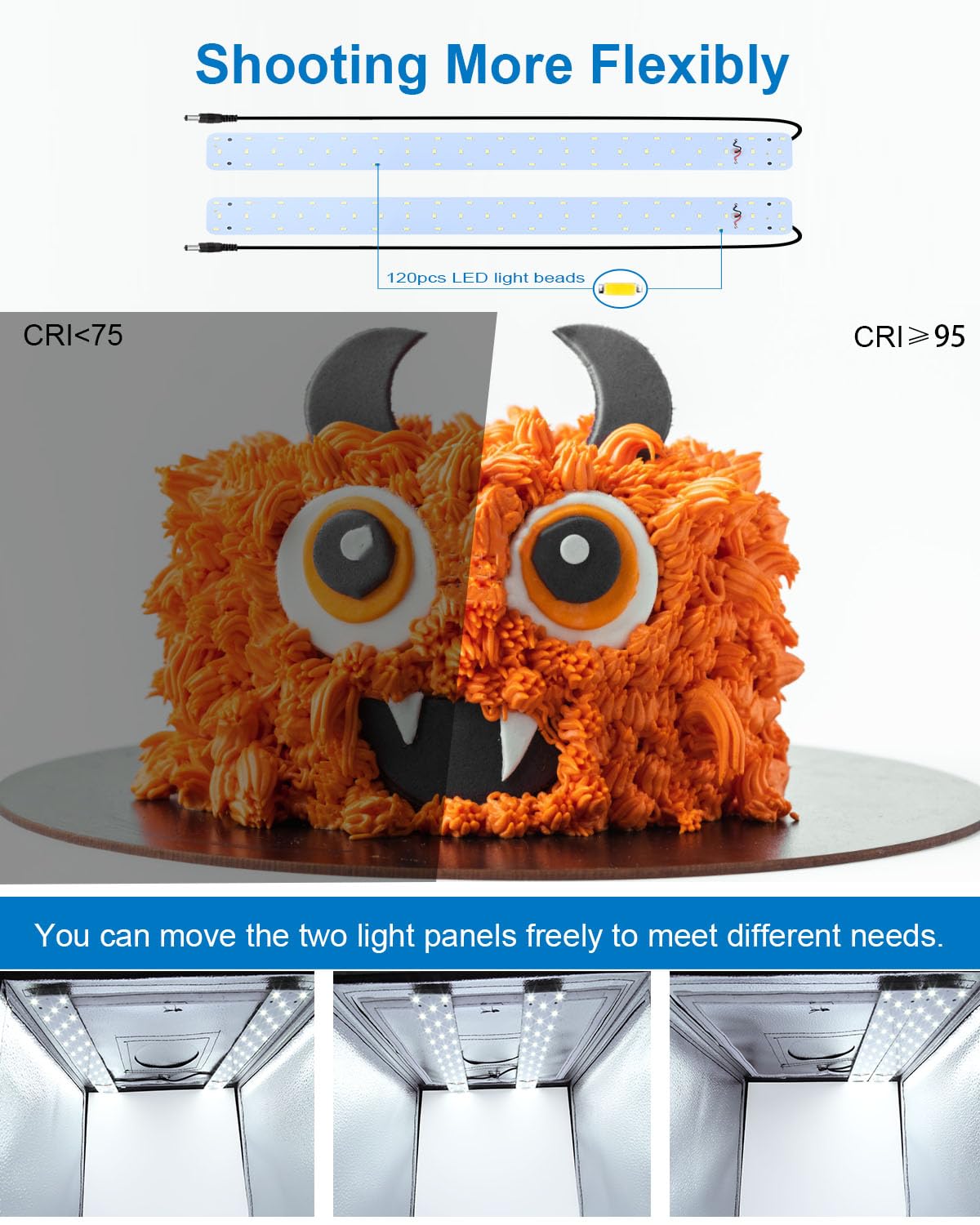 Puluz Light Box 24X24In, Portable Photo Studio Light Box With 120 Led Lights &6 Color Backdrops Professional Photography Lightin