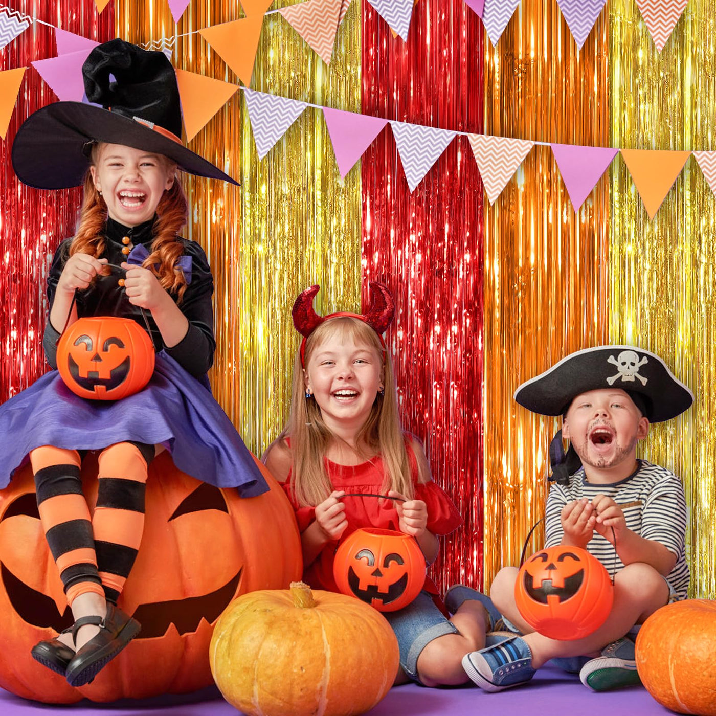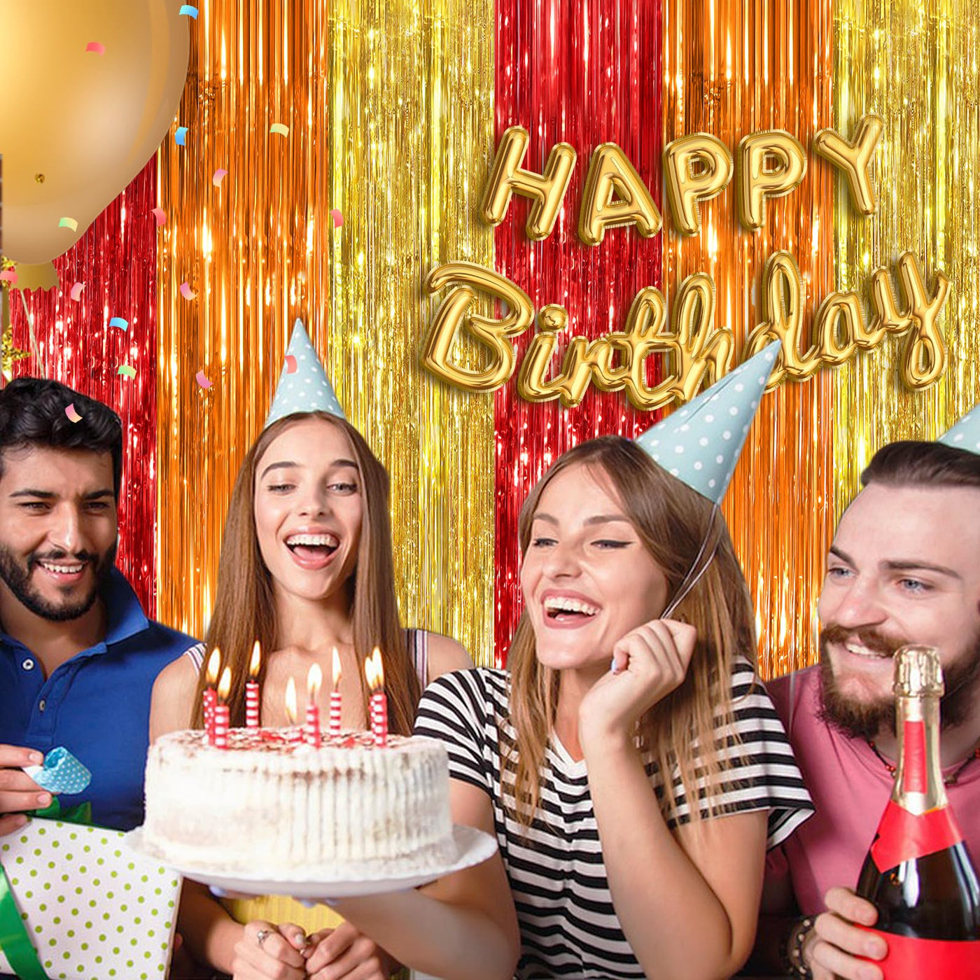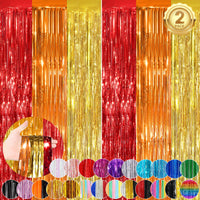 Q: What colors are available for the fringe curtains?A: The fringe curtains come in a vibrant red, orange, and gold combination, adding a festive touch to any party décor. Their shiny appearance reflects light beautifully, enhancing the atmosphere of your celebration.