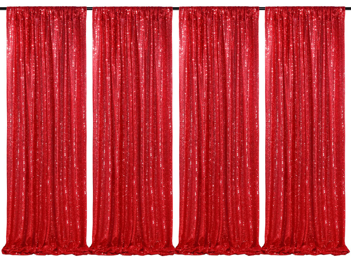 Red Sequin Backdrop 4 Panels 2Ftx8Ft Christmas Party Backdrop Curtains Photo Background Drapes Glitter Birthday Bridal Backdrop