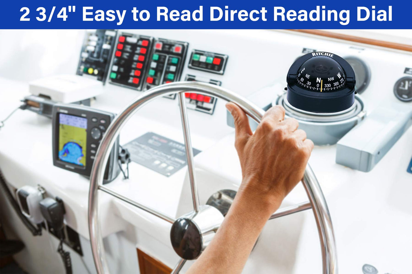 New Explorer Compasses Ritchie Navigation S-53 Surface Black Light Green : 100% Repairable. The Perfect Small Powerboat Compass. Features A 2-3/4'' Direct Reading Dial Built-In Compensators To Easily Adjust For Deviation And Movable Sun Shield. The B51 Bracket Mount Models Are Adjustable And Removable With Bracket And Thumbscrews. The S53 Surface Mount Models Feature Quick Push-Button Removal For Storage And Security. Exclusive 5 Year Warranty.