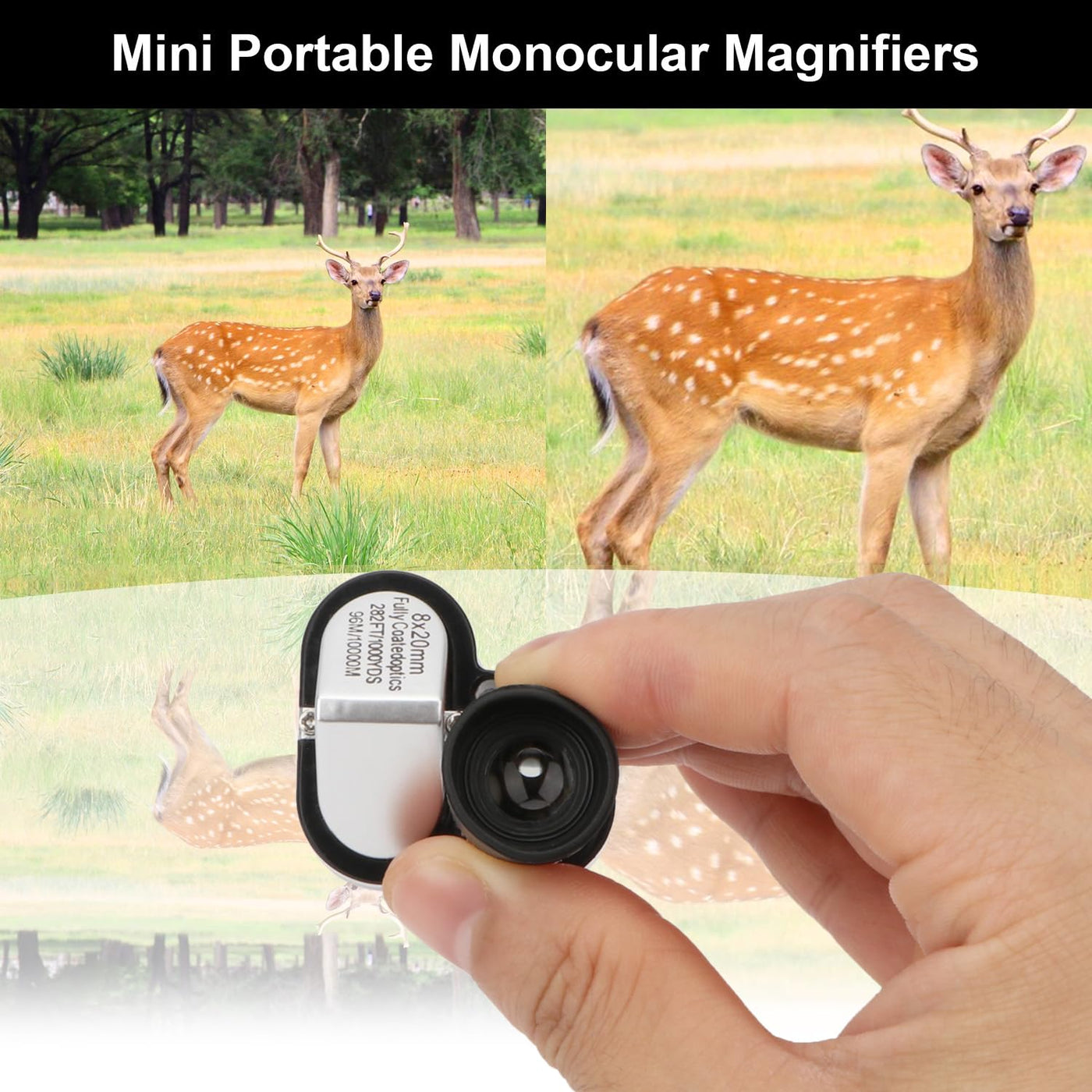 Q: What is the magnification power of the 8X 20MM Mini Portable Monocular Telescope?A: The 8X 20MM Mini Portable Monocular Telescope features a magnification power of 8X, allowing you to see distant objects clearly, making it ideal for outdoor activities such as hiking and bird watching.