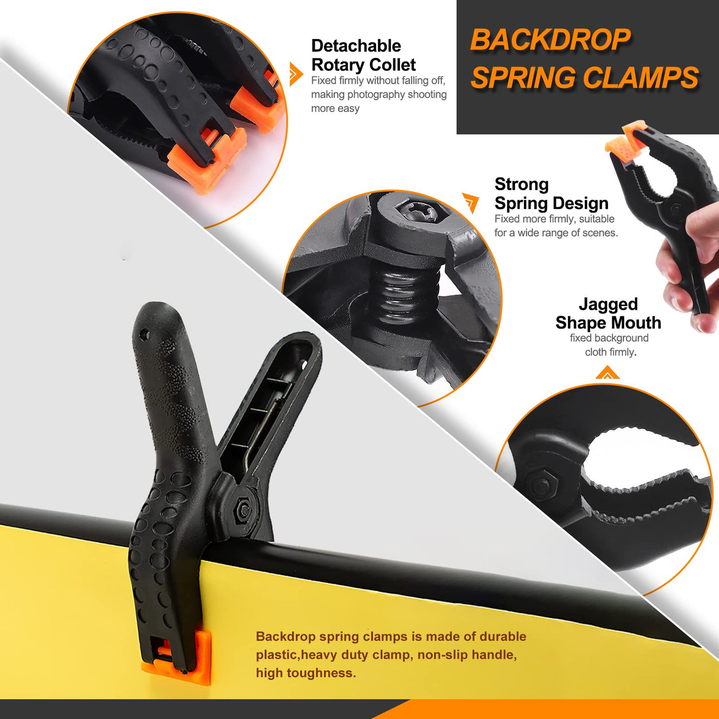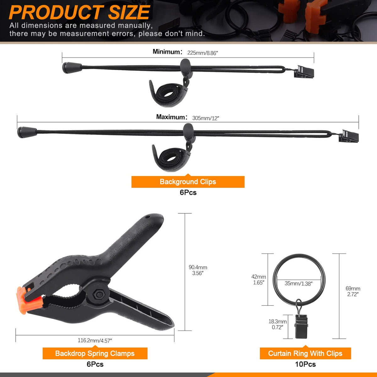 ? Rustark Backdrop Clips Clamps Elastic Photo Clips Holder Clips Assortment Kit With Curtain Clips Backdrop Rings Large Backdrop Spring Clamps Clips For Photography Video Studio Photo Backdrop ??Specification?? ?Size : Please See The 2Nd Picture For More Size Information. ?Material: High-Quality Plastic; Steel Material ?Color: Black ??The Advantages Of This Kit?? ?Reliable & Good Quality - Made Of Strong Plastic And Steel Material That Is Able To Withstand Various Weather Conditions. ?Great Combination- Come In 6 Heavy Duty Backdrop Clips + 6 Elastic Backdrop Clips Holders + 10 Curtain Rings With Clips In 1 Kit, Which Will Fill Your Various Needs. ?Practical Design- Featuring Durable Spring With A Screw For A Better Clamping, A Non-Slip Textured Surface Of Handle To Ensure Clamps Doesn'T Slip Out Of Your Hands. ??Package Includes?? 6 X Heavy Duty Backdrop Clips 6 X Elastic Backdrop Clips Holders 10 X Curtain Rings With Clips Total: 22Pcs ?Warm Tips: -If You Come Across Any Questions, Please Feel Free To Come To Us. We Will Solve It For You As Soon As Possible!