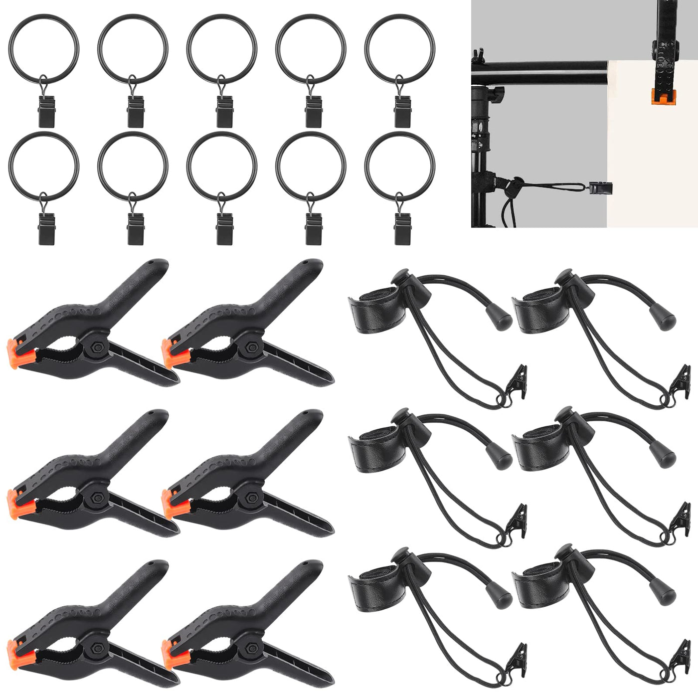 Rustark 22Pcs Backdrop Clips Clamps Elastic Photo Clips Holder Clips Assortment Kit With Curtain Clips Backdrop Rings Large Back
