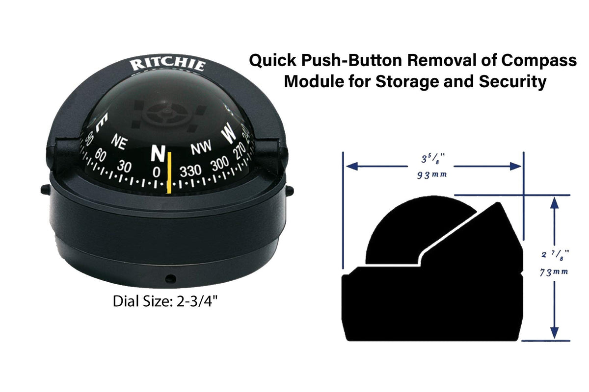 S 53 Ritchie Navigation Explorer Compass 2 3/4 Inch Dial With Surface Mount, Black