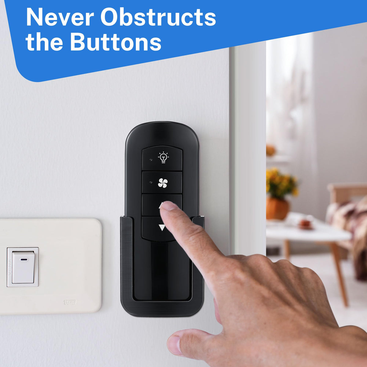 Wall Mount Ceiling Fan Remote Control Holder Specification Color: Black Size: 4.09 /10.4Cm X 1.77 /4.5Cm Material: Plastic Package Includes 2 Ceiling Fan Remote Holder 8 Screws 8 Plastic Expansion (Remote Not Include) Note 1. There May Be Mottled On The Surface Of Plastic Products, Do Not Buy If You Mind. 2. This Remote Control Holder Only Applicable To The Remote Control Shown In The Picture. 3. Small Parts Included, Please Keep Them Away From Little Kids To Avoid Swallowing Risk.