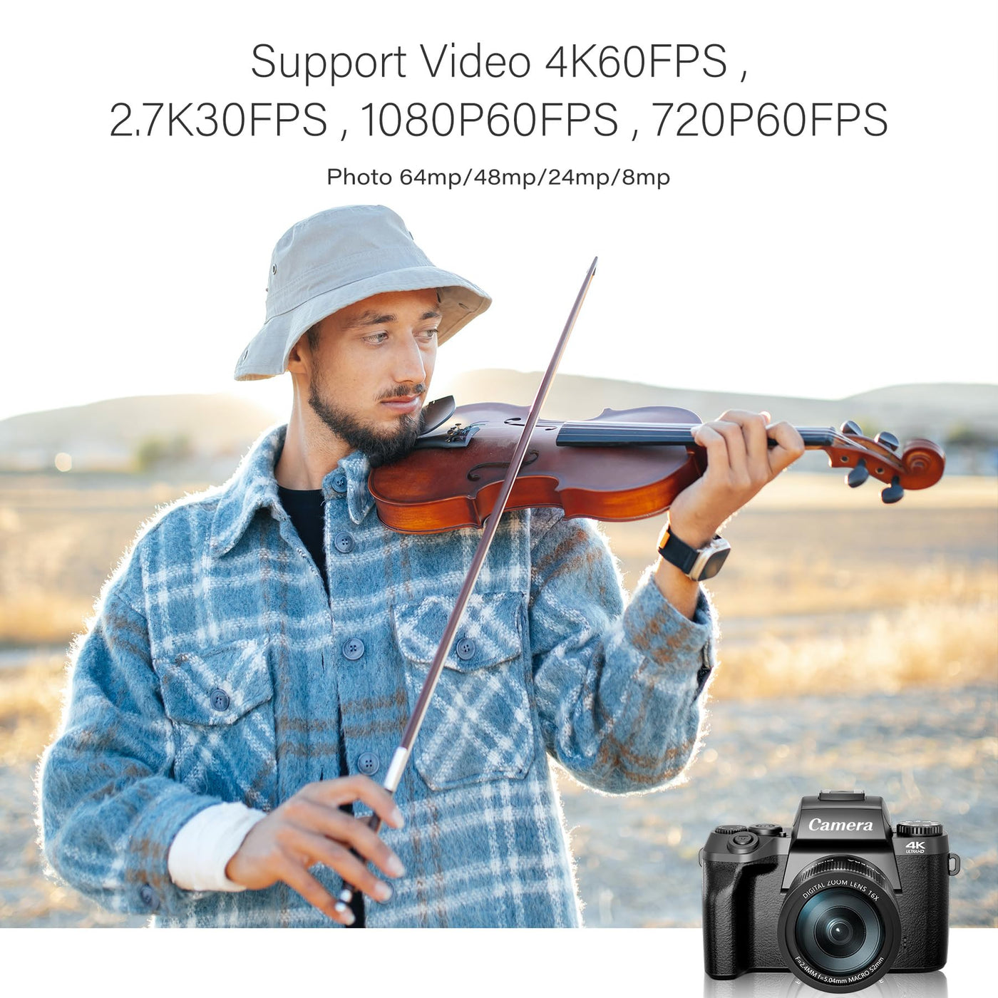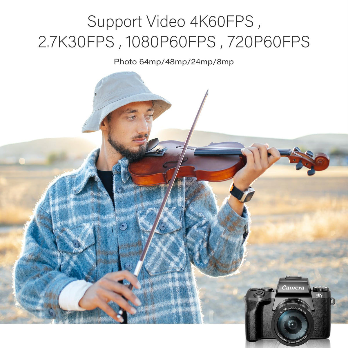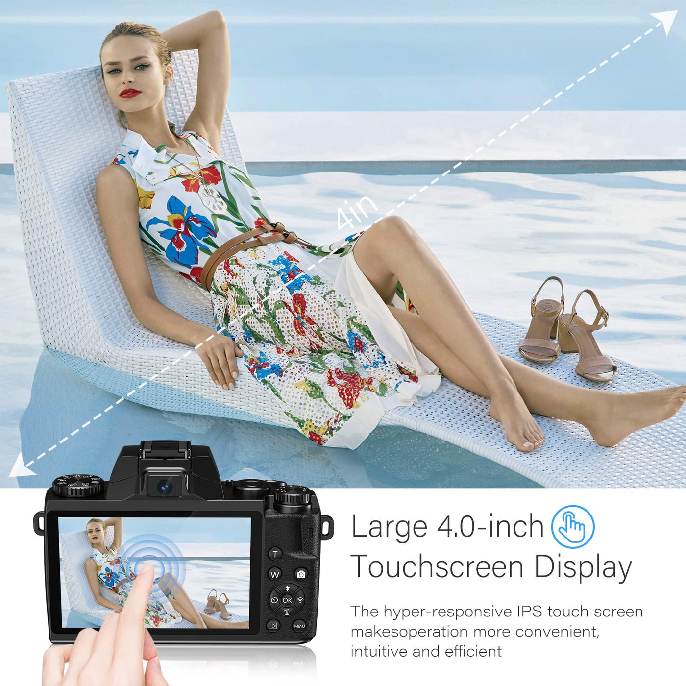 Saneen Digital Camera For Photography, 4K 64Mp Wifi Touch Screen Vlogging Camera With Flash, 32Gb Sd Card, Lens Hood, 3000Mah Ba