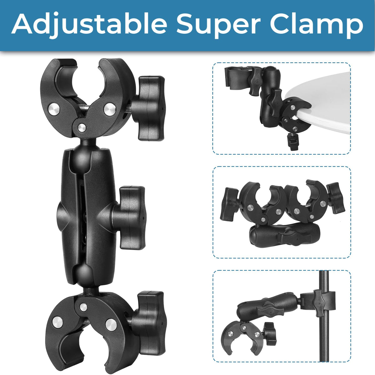 Sequpr Camera Clamp Mount For Gopro, Super Clamp Adapter Double Head Multifunction Holder For Motorcycle, Photography Light Fixt
