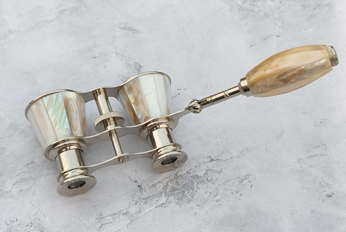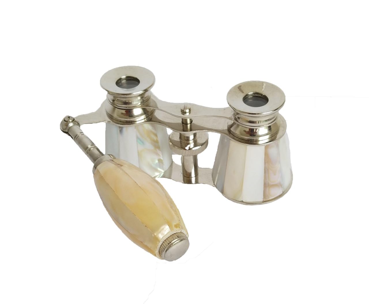 Sifaat World Opera Glasses Nickel Finish Elegant Binoculars For Kids & Adults With Foldable Handle, Portable Theater Glasses,