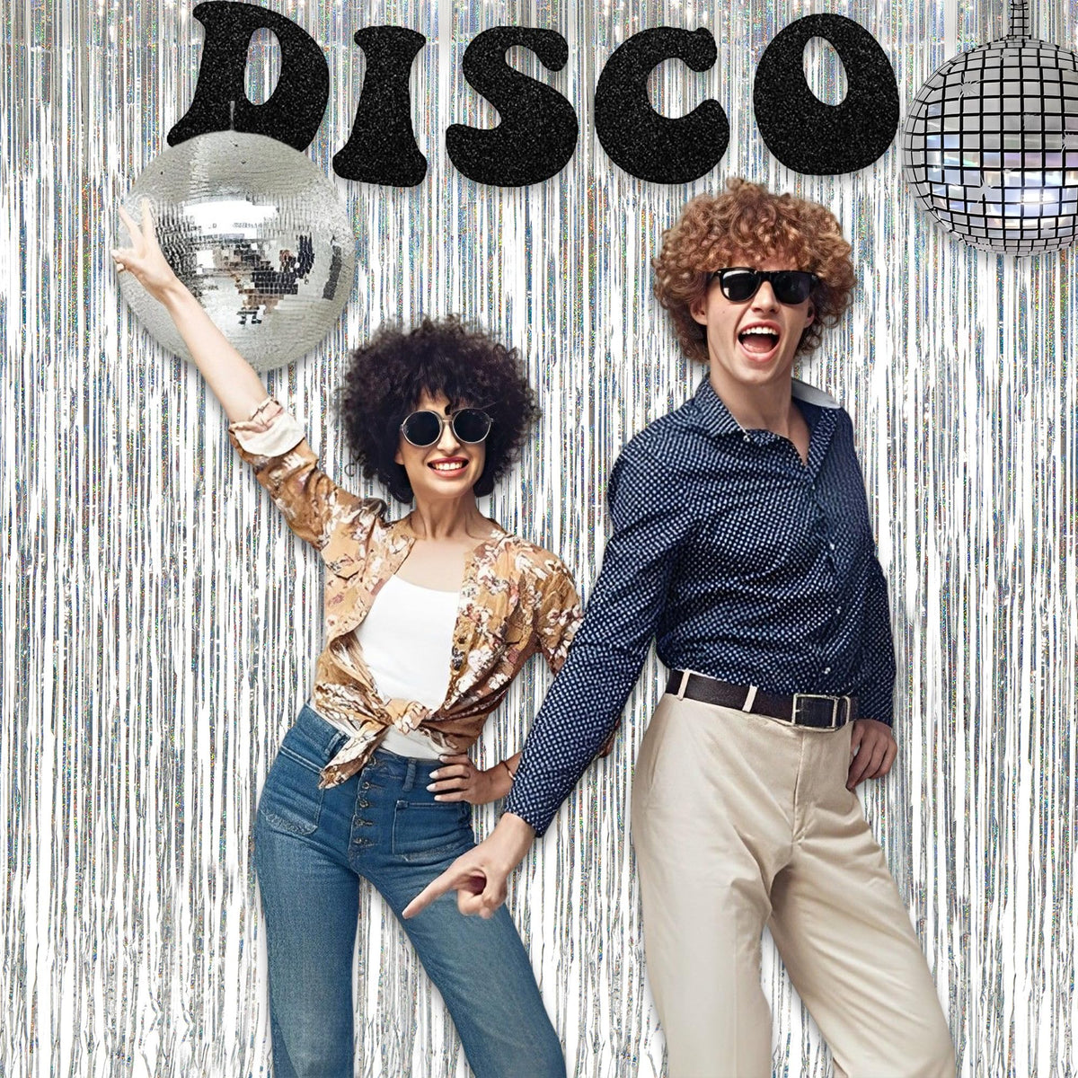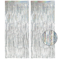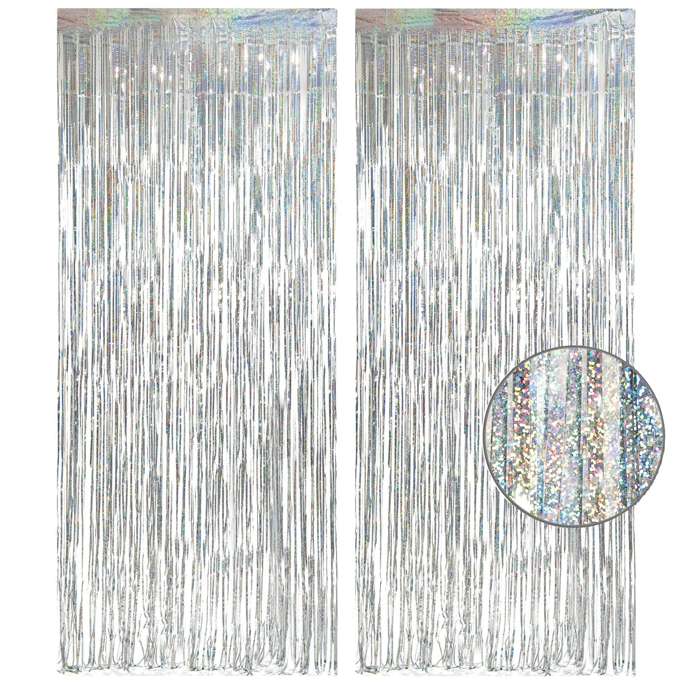 Silver Foil Fringe Tinsel Backdrop Greatril Metallic Tinsel Streamers Curtains For Prom/Dancing Ball/Christmas/Bachelorette Pa