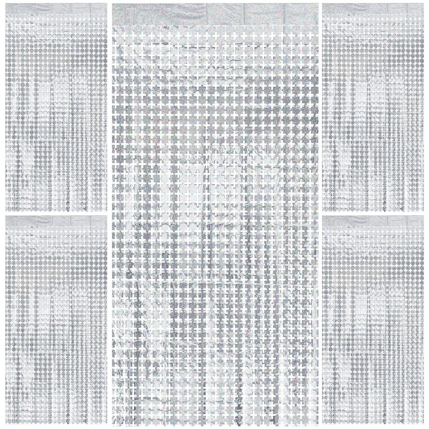 Q: What are the dimensions of the Silver Streamers Metallic Tinsel Foil Fringe Curtains?A: Each Silver Streamers measures 3.2 feet in width and 6.5 feet in height, providing ample coverage for your party backdrop.