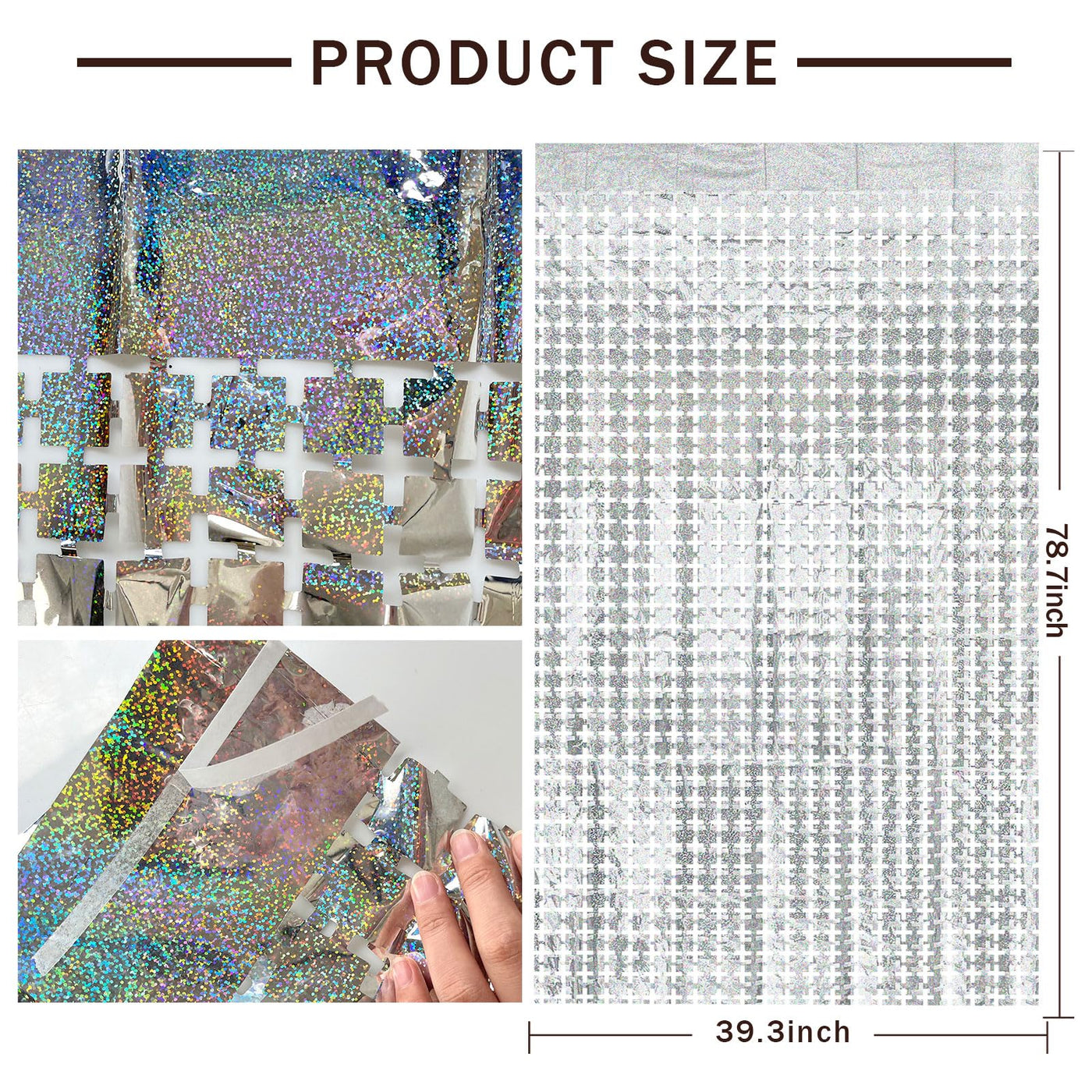 Backdrop Curtain Party Decorations 1,Package Include:2/ 5/10 Pcs Tinsel Streamers 2,Product Features: Square Streamers Provide More Coverage Than Traditional Straight Streamers, And Pieces Of Square Streamers Connected Together Will Shade Your Backdrop Better, Keeping The Party Setup Free From Chaos. Square Laser Streamers Are Available In Red, Black, Green, Pink, Sky Blue, Silver And Gold, You Can Choose According To Your Party Theme And Preference. The Size Is 3.2 Ft X 6.5 Ft, The Back Comes With Adhesive Tape, Suitable For Sticking On The Door, Wall Or Any Place You Need To Decorate. Of Course You Can Cut It According To The Actual Use, Or You Can Use It As A Table Skirt, Both Are Very Good Choices.