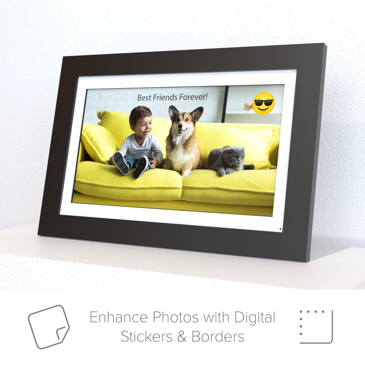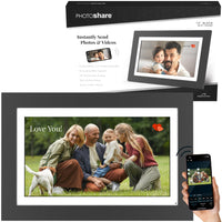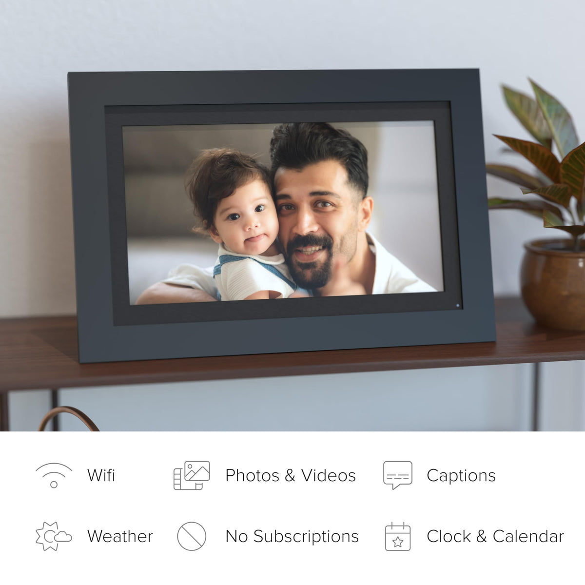 All Of The Sophistication And Elegance Of Table Top Or Wall Mounted Frames With None Of The Hassle. How Many Times Have You Intended To Print A Physical Picture Album Of Cherished Photo Memories From Your Phone To Gift To A Loved One, But Never Found The Time? The Process Is Tedious: Upload Your Photographs From Your Smart Device To Some Unsecured Weblink, Wait A Day For Processing Or Longer If You Ship To Your Home, Drive To The Store, Pick Up Your Prints And Purchase Multiple Frames For The Present To Be Ready. Our Electronic Picture Frame Is The Solution To All Of That! One Purchase And Our Digital Frames For Photos Paired With Our Free Photoshare Frame V2 App (Available For Ios And Android) Creates A Digital Photo Album That Is Completely Secured. We Are Committed To Data Privacy: Our Usa Based Servers And End-To-End Encryption Ensure The Safety Of Your Most Cherished Memories. Get Your Photos Off Your Phone And Into Your Daily Life! You Can Share Lifes Special Moments Instantly From Your Phone To Photoshare Frames, Anywhere In The World In Just Seconds. Beautifully Crafted Wooden Picture Frames, Available In 8'''', 10'''', And 14'''' Sizes. Simply Smart Home, Brookstone, And Disney Frames All Use Photoshare Technology, So No Matter Which Brand Fits Your Home Decor, You'Ll Be Able To Stay Connected With Loved Ones, Near And Far! Our Electronic Photo Frame Can Also Be Used As A Smart Display. Use The Clock & Calendar Feature To Display Date And Time Along The Bottom Of The Screen To Keep You On Time, Up To Date And In Touch With Family And Friends. Create An Album Of Inspirational Photos And Motivational Phrases To Help Stick To Your New Years Resolutions. The Perfect Teacher Appreciation Gift To Share Classroom Memories From The School Year. Rotating Signage Is A Breeze With Our Large Digital Picture Frame. Use At Your Vacation Rental, Restaurant, Facilities Lobby, Or Waiting Room To Provide Check-In Details Or Share A Wifi Password.