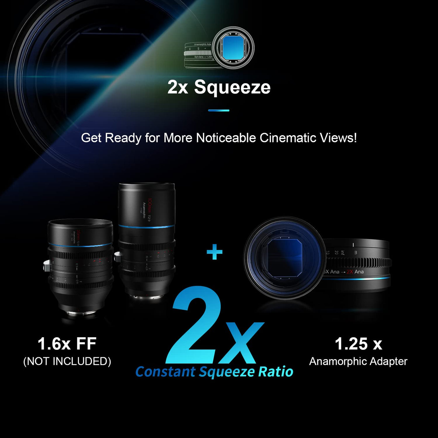 Add-On Anamorphic - Featuring A Consistent 1.25X Standard Squeeze Factor, This Lens Adapter Aims To Turn Any Camera Lenses Into Anamorphic. | Premium 2X Squeeze - Adding The 1.25X Adapter To The Front Of Sirui Full-Frame Anamorphic, The Squeeze Factor Instantly Increases From 1.6X To 2X For Embracing More Noticeable Anamorphic Characteristics, Like The Waterfall Bokeh, Sci-Fi Blue Flares. | Versatile Combination - It Comes With A Standard 82Mm Rear Thread To Put It In Front Of A Whole Range Of Spherical Or Anamorphic Lenses. Three Step-Down Rings (67Mm, 72Mm, 77Mm) And One Step-Up Ring (92Mm) Are Offered For More Flexible Compatibility. | Front Single Focus - This Adapter Takes A Revolutionized Step In Simplifying The Focus Method To On-Time Focus, Which Is Achieved By Setting The Base Lens At Infinity And Using Only The Adapter To Focus. | Model: Adp125X | Focus Method: Front Single Focus | Squeeze Factor: 1.25X | Length: 46.5Mm-58.5Mm | Weight: 650G | Max Aperture: T2.9 | Min Focus Distance: 0.8M | Front Diameter: 85Mm | Rear Thread: 82*0.75Mm | Max Diameter: 89.6Mm