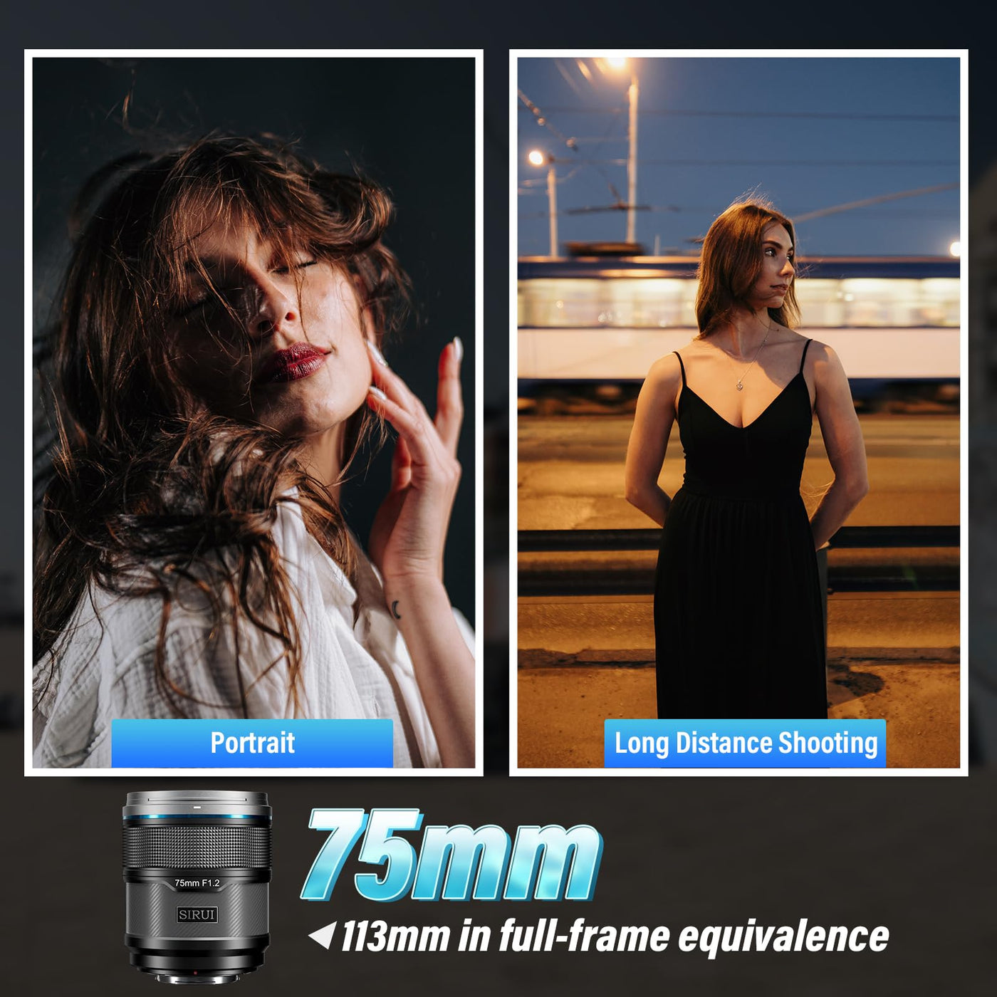 Sirui Sniper 75Mm Autofocus Lens, F1.2 Telephoto Aps C Camera Lens For A5, A6, Fx30, Zv E10 (E Mount, Black)