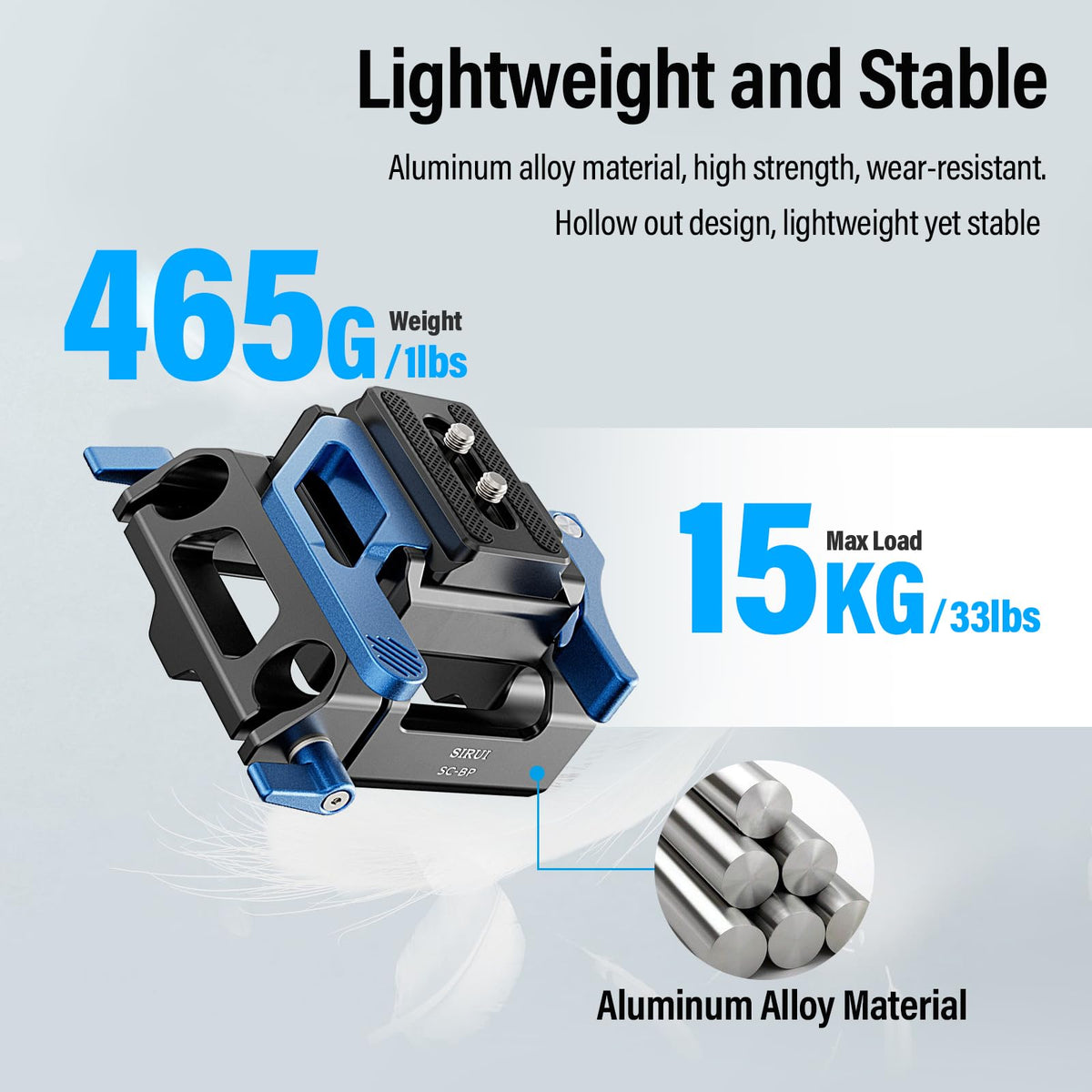 Sirui Universal Camera Baseplate With Dual 15Mm Rod Rail Clamps, Base Plate With Quick Release Plate For Tripod, Shoulder Rig, Follow Focus, Sc Bp