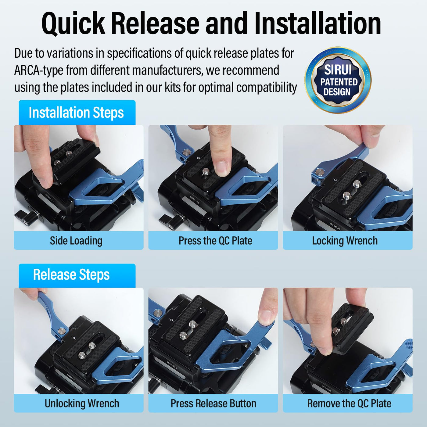The Inclusion Of A Quick Release System Ensures Swift And Hassle-Free Equipment Setup, Catering To Various Camera Models With Ease. This Baseplate Goes The Extra Mile In Safety, Incorporating A Purposeful Safety Lock Design Within The Quick-Release Slot, Safeguarding Your Valuable Gear During Demanding Shoots.