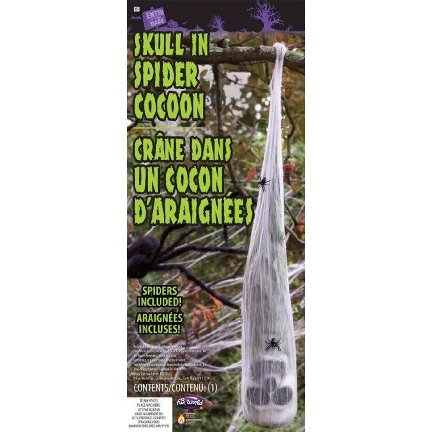 Skull In Spiderweb Cocoon Halloween Prop