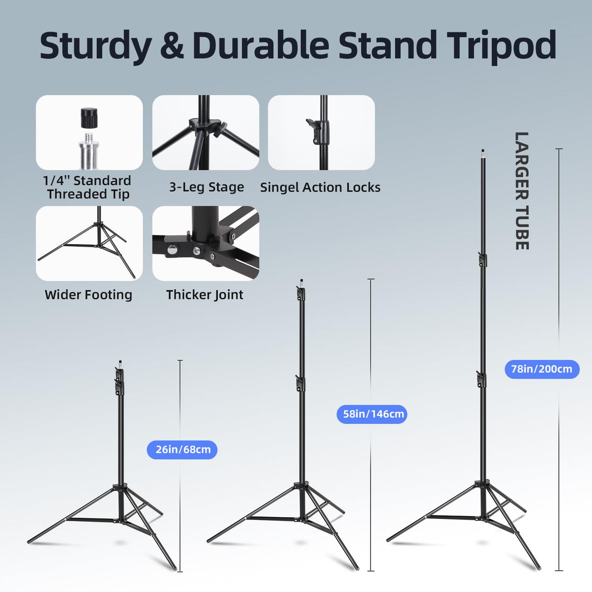 The Kit Included: 2Pcs 20'' X 28''/50Cm X 70Cm Softbox +2Pcs 85W 2700-6400K 100V-240V Led Light Bulb + 2Pcs 79''/200Cm Aluminum Alloy Light Stand + 2Pcs Remote Control + 1Pcs Oxford Cloth Carrying Bag. | Updated Led Bulbs: 3-Color Dimmable Led Bulbs With Diffuser Built-In, Color Temperature 2700-6400K And Brightness 1-100% Adjustable Via Remote Control. | Remote Control& Easy To Operate: Turn On/ Off The Light And Adjust The Brightness And Color Temperature Of The Softbox Lighting By Remote Control(The Remote Control Is Not Equipped With Battery, Please Buy It Yourself). Durable Oxford Cloth Tote To Accommodate Softbox Kits, Highly Portable And Lightweight To Carry. | Rotatable Head & Adjustable Stand: The Light Stand Tripod Height Adjustable From 26 To 79 Inch/66Cm To 200Cm, 3-Section Column Legs, Made Of Aluminum Alloy More Sturdy And Stable. Angle Can Be 210