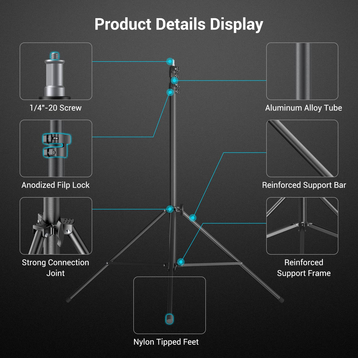 Smallrig Ra-S280A Air-Cushioned Light Stand With Arm 3737 Key Features: 1. Air-Cushioned Design To Protect Lights And Fingers From Accidental Descent. 2. Freely Adjustable Height From 94Cm To 280Cm, Suitable For Different Scenarios; Folded Length Of 94Cm, Easy To Be Carried With. 3. Mainly Made Of Aluminium Alloy And Iron; The Iron Support Bar Is 2.66Mm Thick And 15Mm Wide And The Aluminium Alloy Knob Is Strong And Reliable; Comes With High Load-Bearing Capacity As Well As Quick And Efficient Flip Lock. 4. Flat 1/4''-20 Threaded Adapter Features Higher Compatibility And Securer Accessory Connection; And Is Made Of Strong And Reliable Stainless Steel To Prevent Wear And Corrosion. 5. Distance Between Legs At Maximum Extends To 1.2M For Added Stability; Anti-Slip And Wear-Resistant Nylon Foot Pad. In The Box: 1 Ra-S280A Air-Cushioned Light Stand 1 Boom Arm 1 Sandbag 1 Stainless Steel Connector 1 Metal Hook Product Dimensions: Folded Length:940Mm Max Height:2800Mm Arm Length:950-1700Mm Center Column Diameter:35-30-25Mm Arm Diameter:26-23Mm Leg Diameter:22Mm Load Capacity:5Kg Net Weight:3Kg Package Weight:3.5Kg Package Dimensions:46*24*98(1)Cm Material(S): Aluminum Alloy