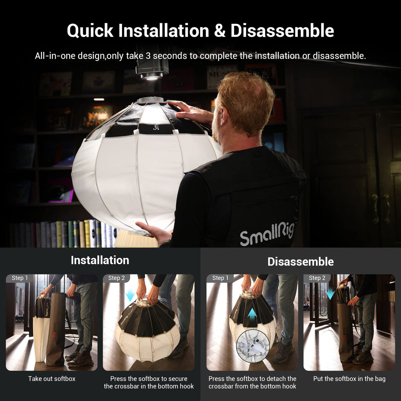 Smallrig Lantern Softbox Soft Light Modifier, 26 Inch/65 Cm Softbox Diffuser Compatible With Smallrig Video Light 120B/120D/220B