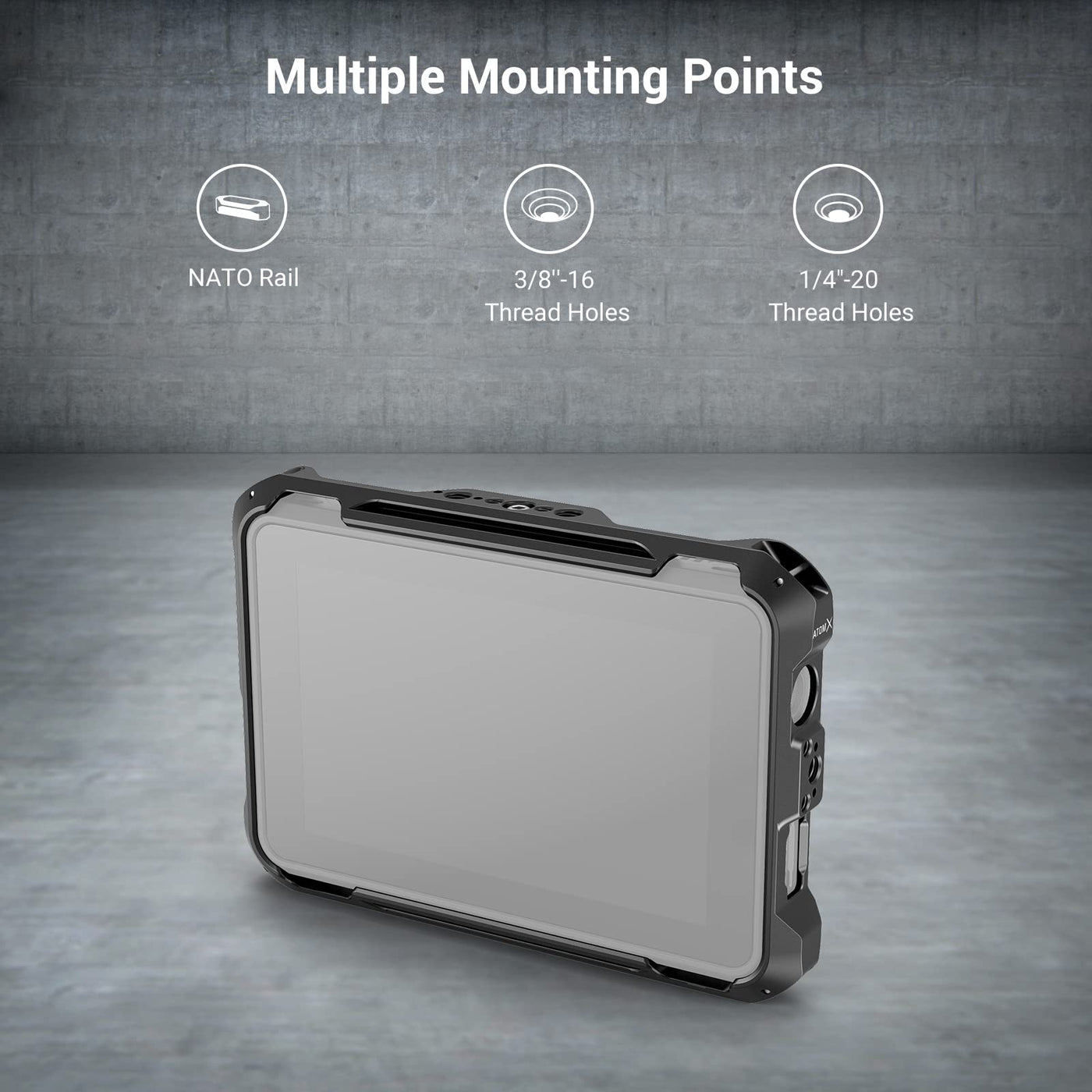 Q: Can I mount additional accessories on the SmallRig Monitor Cage?A: Yes, the SmallRig Monitor Cage features multiple 1/4"-20 and 3/8"-16 thread holes, allowing for easy attachment of various accessories. It also includes built-in NATO rails for quick release and compatibility with other SmallRig products.