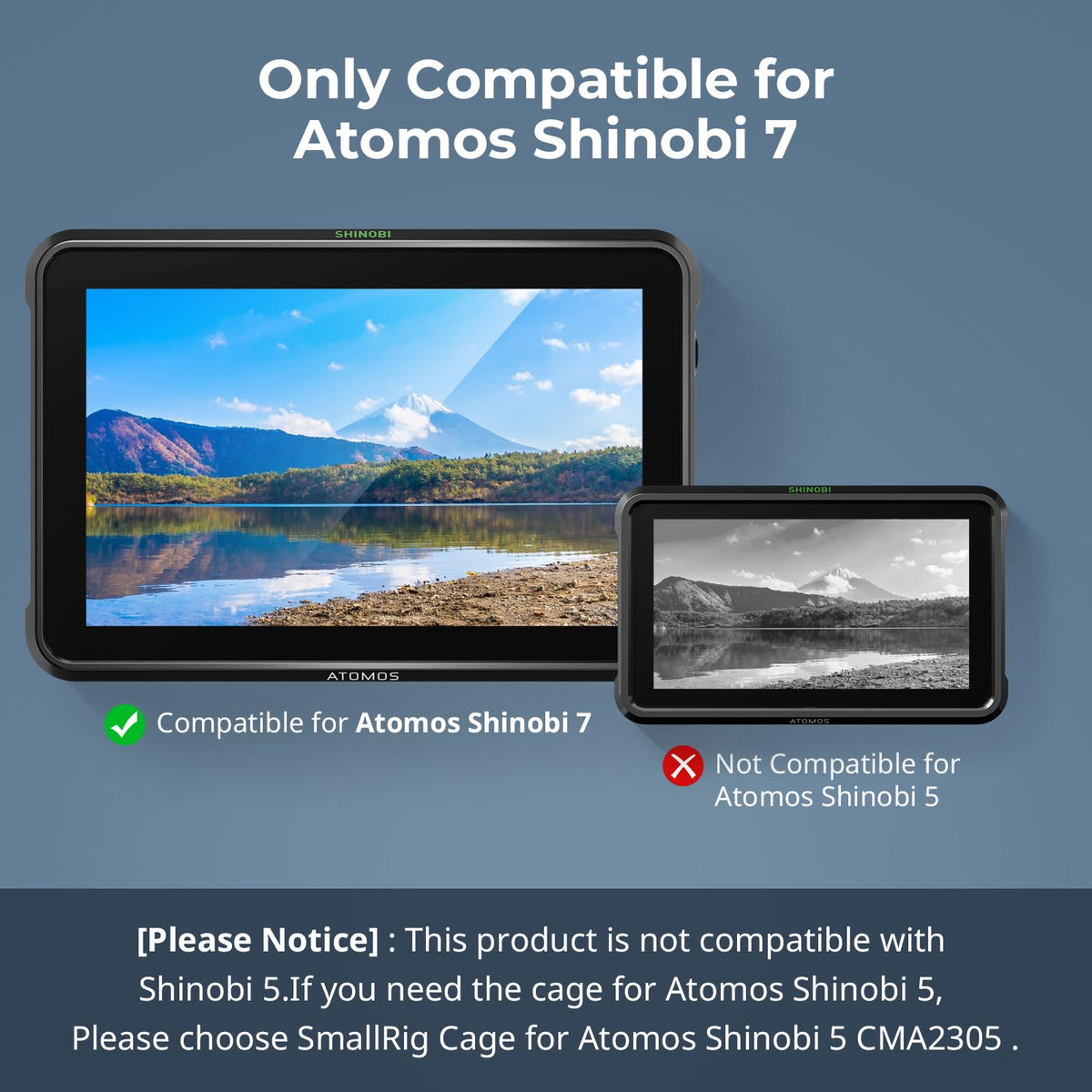 Q: Is the SmallRig Monitor Cage compatible with Atomos Shinobi 5?A: No, the SmallRig Monitor Cage is specifically designed for the Atomos Shinobi 7 and is not compatible with the Atomos Shinobi 5. If you need a cage for the Shinobi 5, consider the SmallRig CMA2305.