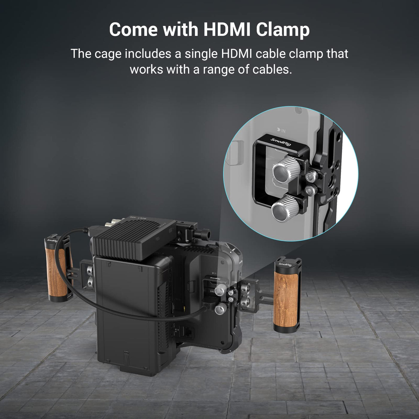 Q: How does the cable clamp work in the SmallRig Monitor Cage?A: The included cable clamp helps secure the HDMI cable and port, preventing any strain or damage during use. This feature ensures that your connections remain stable and protected while you're working.