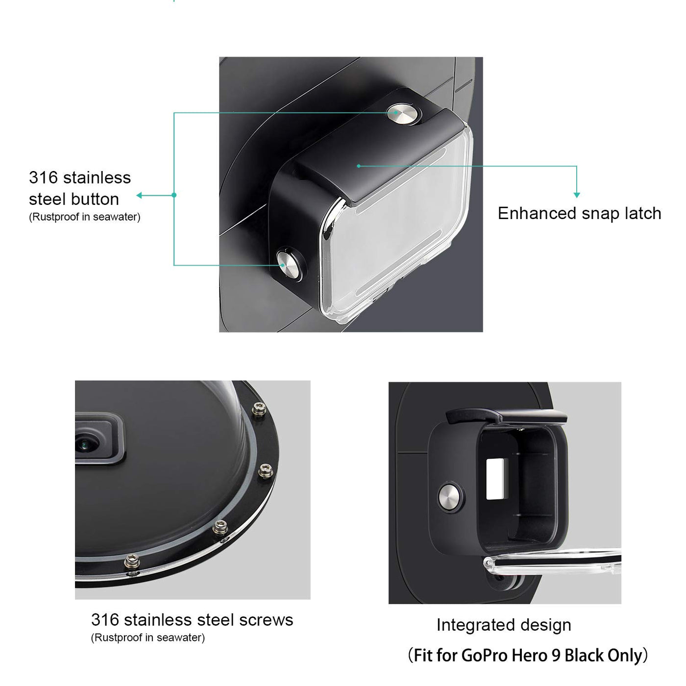 Soonsun Dome Port For Gopro Hero 13/12/11/10/9 Black, 45M Underwater Water Dome Lens With Waterproof Housing Case, Floating Hand