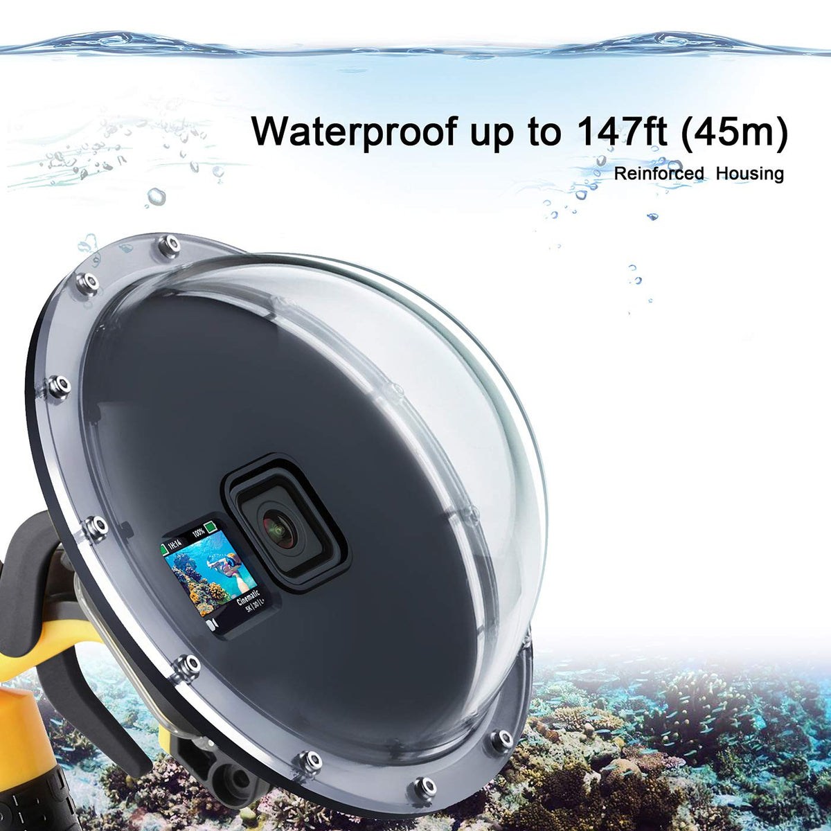Semicircular Dome Port Design: Move Dome Port Waterline From The Camera Lens, Making It Possible To Capture Images Both Above And Below The Water Simultaneously, Which Allows You To Capture What'S Above And Below The Surface All In One Shot. | Front Lcd View Window: Reserved Opened Space For The Lcd View Window, Convenient To Check Camera Mode Through The Acrylic Dome. | Rubber Covered Floating Hand Grip: Newly-Designed Hand Grip, Anti-Skid Even For Underwater Usage. With 1/4 Inch Socket At The Bottom, Compatible With Other Accessories With 1/4 Inch Screw. | Comes With The Pistol Trigger (Function As Shutter Release): It Will Be Easy To Press The Shutter Button. Ensure You The Convenience To Capture Your Favorite Cool Shots Instantly And Stably. Comes With A Curved Extension Arm For Selfies. | Compatibility: This Dome Port Housing Case Is Compatible With Gopro Hero 13 / 12 / 11 / 10 / 9 Black Action Camera Perfectly.