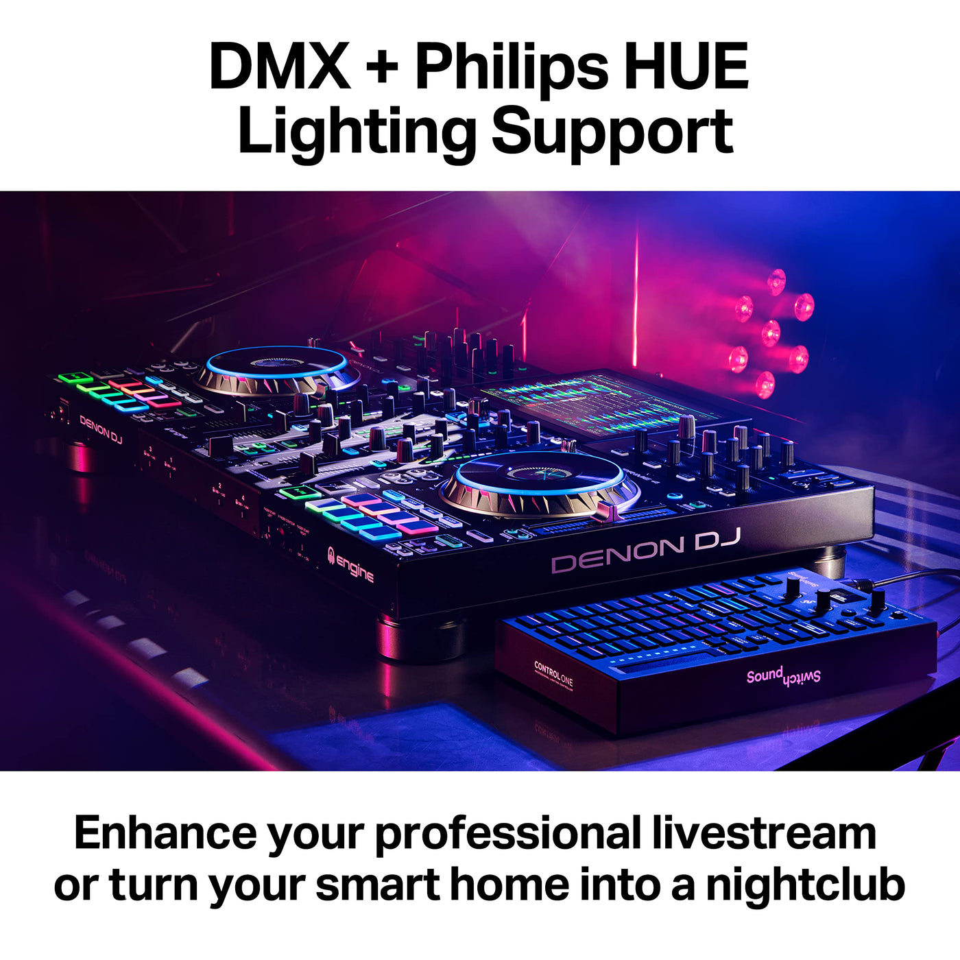 Define Your Dj Set With The Perfect Light Showcontrol One Gives Djs Tangible Lighting Control, Whilst Automatically Creating Synchronized Light Shows That Deliver An Immersive Audience Experience. Compatible With Dmx And Philips Hue Smart Lights, Control One Allows You To Effortlessly Illuminate Your Event, Live Stream, Or House Party.Create Custom Lighting Displays Effortlesslywith Soundswitch Users Can Be As Creative As They Like In The Digital Lighting Workstation (Dlw) Or Let The Software Do The Work Via The Automation Features Or Pre-Built Lighting Scenes. Soundswitch Allows Djs And Lighting Designers To Sync Lighting Visuals With Live Audio Seamlessly Which Are Outputted To The Lighting Array Via Soundswitch Hardware Or Third-Party Supported Interfaces.New On Soundswitch Desktop 2.9:1. Supports Any Music Sourcelive Audio Bpm Detection Syncs The Light Show With External Audio Sources, Such As Live Bands Or Any Daw Or Dj Software Using A Computers Internal Mic, Usb, Or Live Input.2. Expanded Featuresautoloops On Scripted Tracks, Increased Capacity From 32 To 128, Extended Repeat Options, And Enhanced Edit Mode. With Added Status Indicator And Source Selector For Ease Of Use.