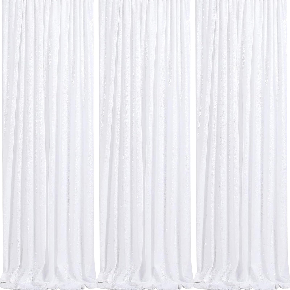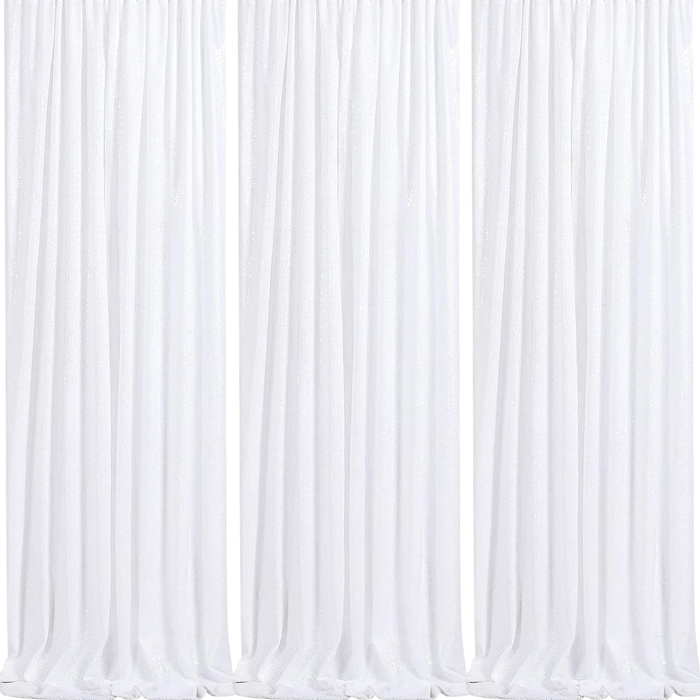 Sparkly Backdrop White Photo Backdground Curtain 3 Pack 2X8Ft Sequin Fabric For Birthday Wedding Baby Shower Christmas Party Dec