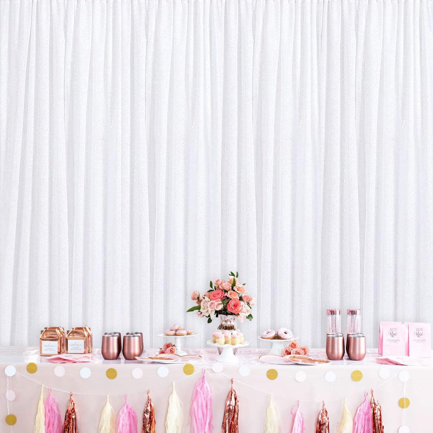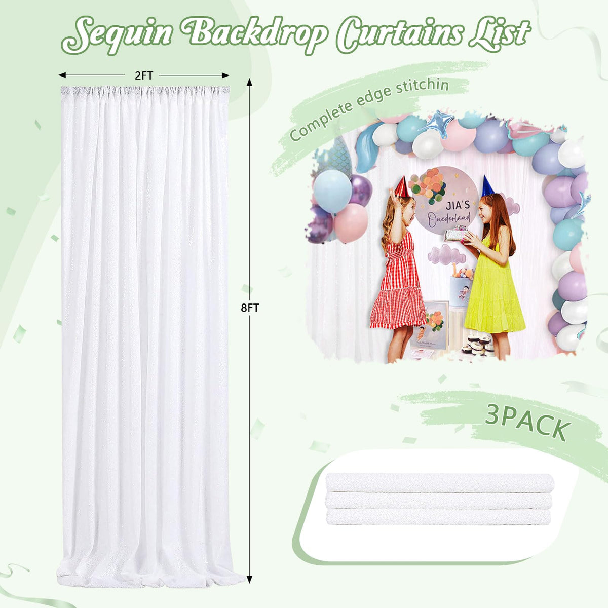 Sparkly Backdrop White Photo Backdground Curtain 3 Pack 2X8Ft Sequin Fabric For Birthday Wedding Baby Shower Christmas Party Decorations
