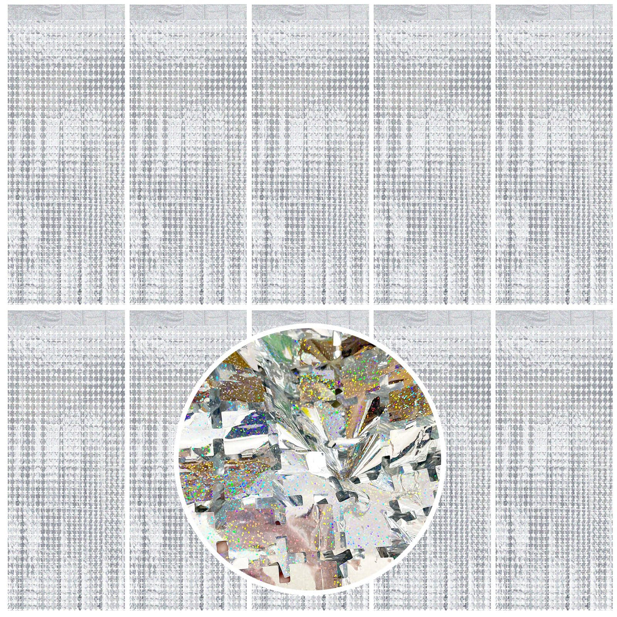 Square Tinsel Curtain Party Backdrop 10Pcs Glitter Foil Fringe Curtain Party Decor Silver Photo Booth Backdrop Streamers For H