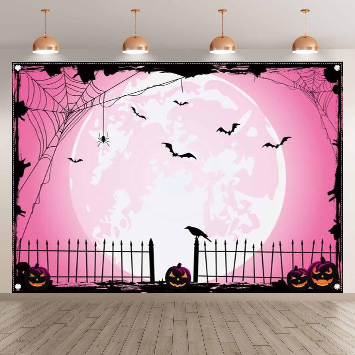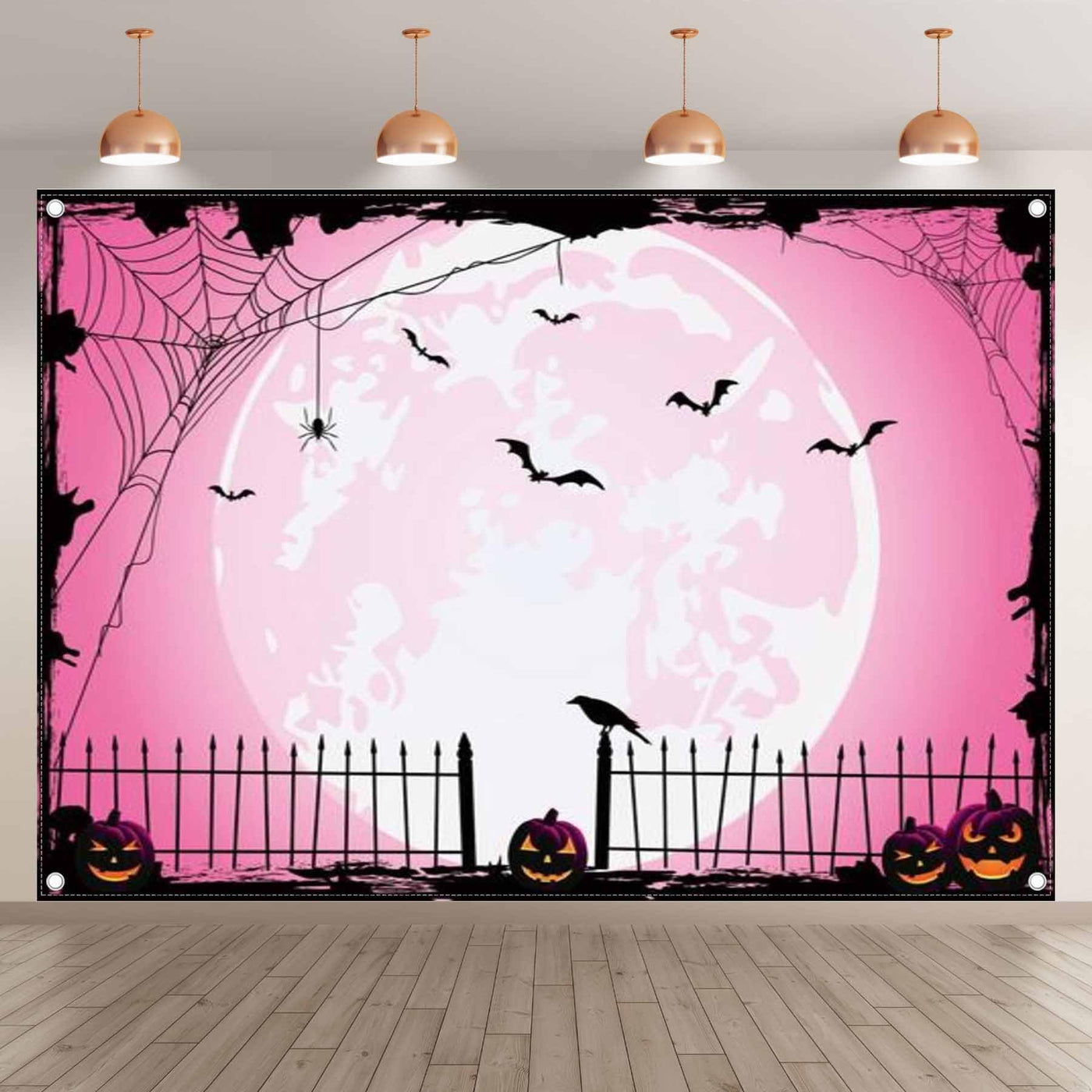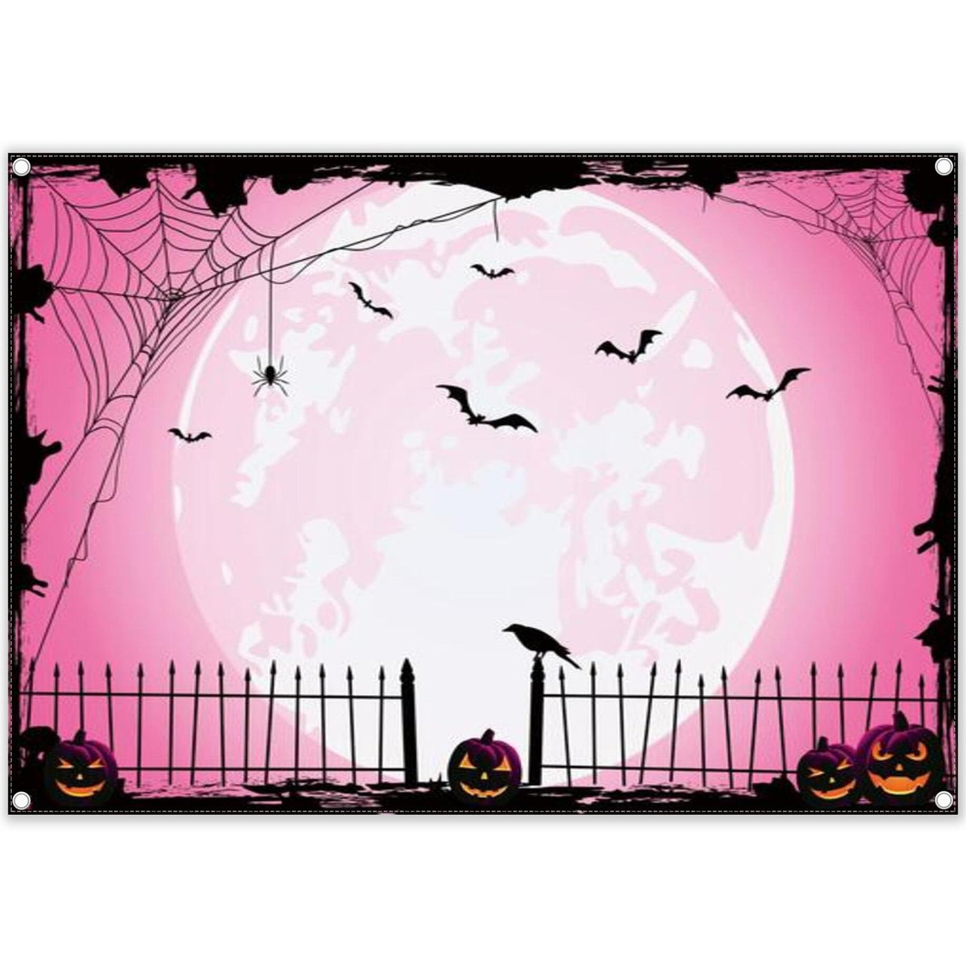 Swepuck 7X5Ft Pink Halloween Photo Backdrop For Parties Large Pumpkin Patch Moon Picture Photography Background Kids Witch Haunt