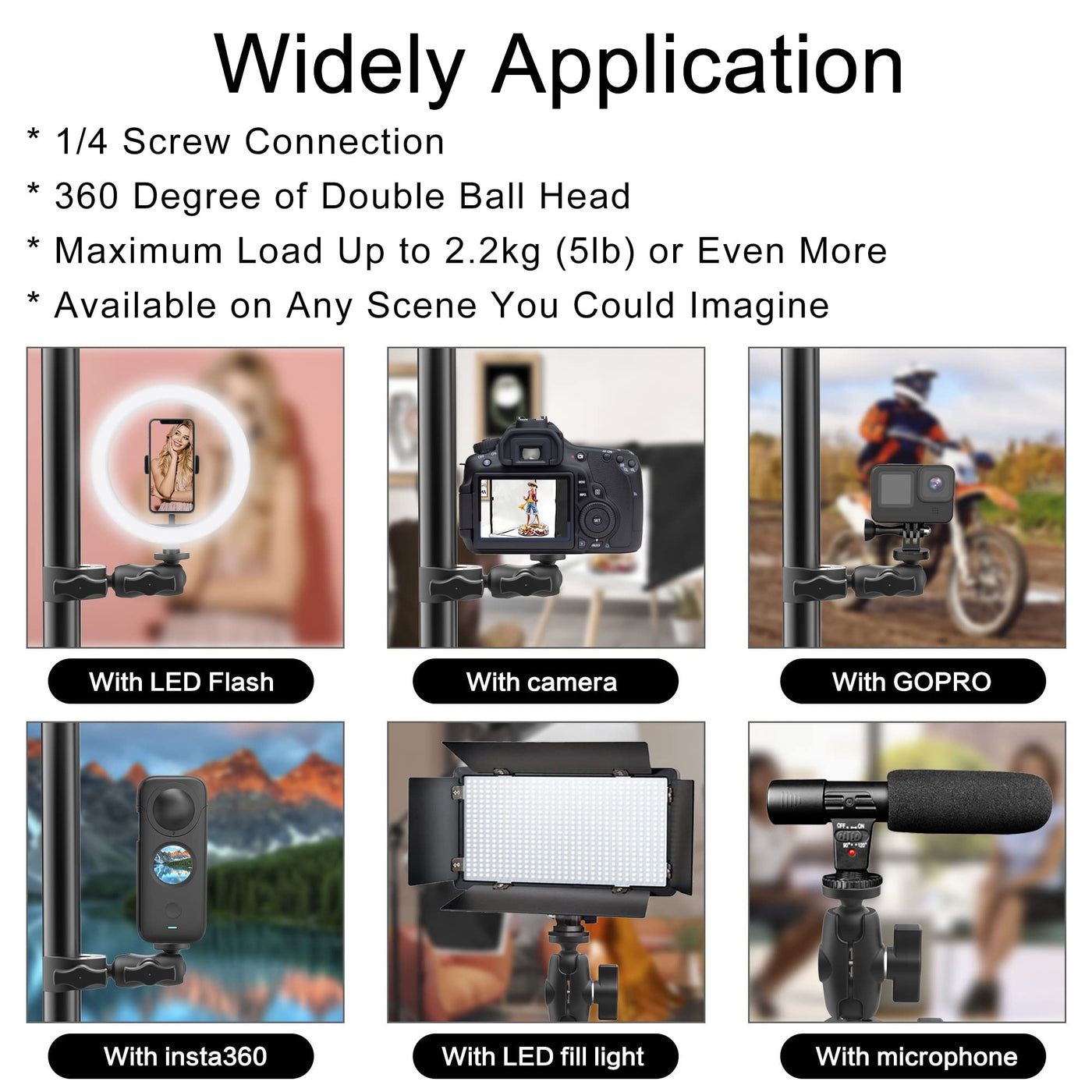 Taisioner Long Style Camera Clamp Mount ,Super Clamp Mount Extended 3.6'Socket Arm Connect With Ball Head Clamp And 1/4'-20 Ballhead Thread,Helps Clamp Cameras Or Lamps To Complete Photography In A Variety Of Scenarios, Such As Tripods, Motorcycles, Bicycles, Poles, Desktops, Etc.