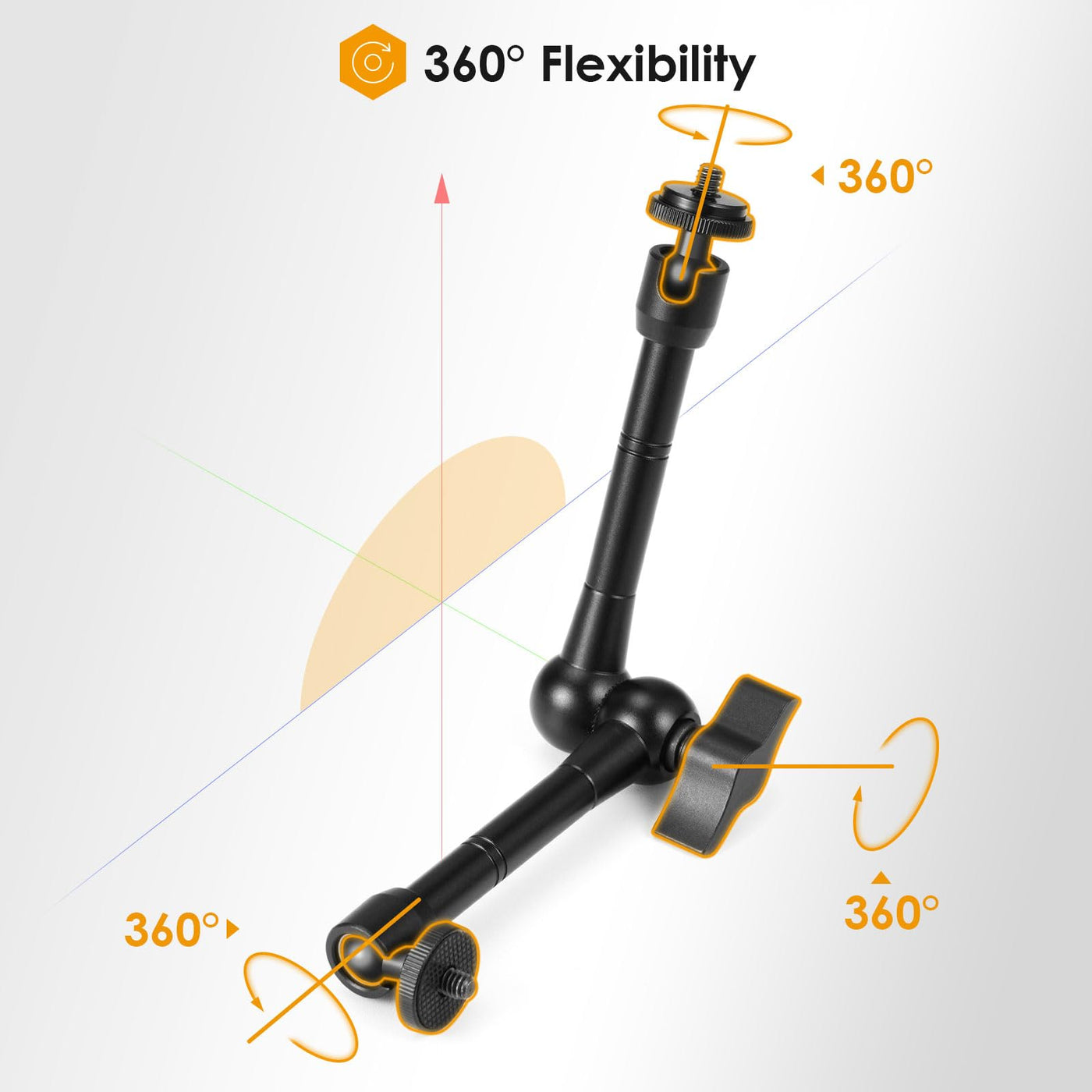 Advanced Version Of Magic Arm Camera Mount: Don�T Worry About Any Break Or Unpleasant Use Experience, We�Ve Upgraded The Screw And Tightening Konb Of The Magic Arm. Made Of High Quality Aluminum Alloy Material, It Is Durable And Reusable For Your Need. 11 Inch Magic Arm With 1/4' And 3/8' Thread And Super Clamp, All For Your Ultimate Use Experience. | 11 Inch Adjustable Articulating Magic Arm Camera Mount: Enjoy Unparalleled Flexibility With The Tarion Magic Arm'S 11-Inch 360� Adjustable Articulating Design. Effortlessly Position Your Equipment At Various Angles To Capture The Ideal Perspective. Whether You Need A Low-Angle Shot Or A High-Angle View, This Arm Adapts To Your Creative Vision, Empowering You To Explore Different Shooting Angles With Ease. | Versatile Magic Arm With Super Clamp: Equipped With A Non-Slip Rubber Pad, This Clamp Enhances Friction And Minimizes Scratches, Ensuring A Tighter, More Secure, And Stable Installation. The Opening Size Of The Crab Clamp Is 0.45 Inches To 2.16 Inches. It Offer Comprehensive Support For Connecting Lcd Monitors, Led Lights, Flashlights, Phones, And More | Universal Compatibility Of Camera Clamp Mount & Magic Arm : Designed With Versatility In Mind, The Tarion Magic Arm Features 1/4' And 3/8' Threaded Interfaces, Ensuring Compatibility With A Wide Range Of Cameras, Camcorders, And Accessories. Whether You'Re Using An Action Cam Or Cell Phone. | Portable Performance:The Magic Arm Boasts A Lightweight And Portable Design, Making It The Perfect Companion For On-The-Go Photographers And Videographers. Whether You'Re Exploring Remote Landscapes Or One-Day Trip, This Arm Is Designed To Keep Up With Your Adventures, Offering Unparalleled Performance In A Compact Package.