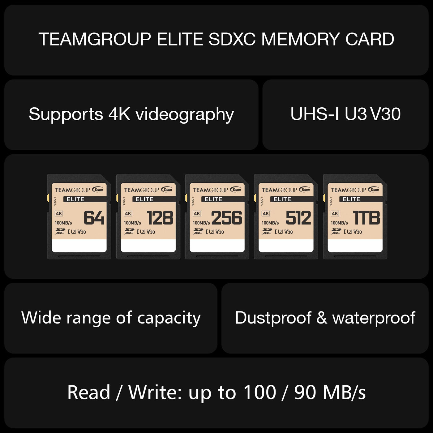 Teamgroup Elite Sdxc Uhs-I U3 High Speed Memory Card Has A Read/Write Speed Of Up To 100/50Mb. At The Same Time, It Supports Video Speed Class 30 (V30) And The Current Mainstream 4K Ultra Hd Video Recording, So You Can Fully Enjoy The Fun Of Photography. Functions Of Waterproof, Anti-Shock, Anti-X-Ray, Anti-Static, And Etc. Offer Your Data An All Around Protection.