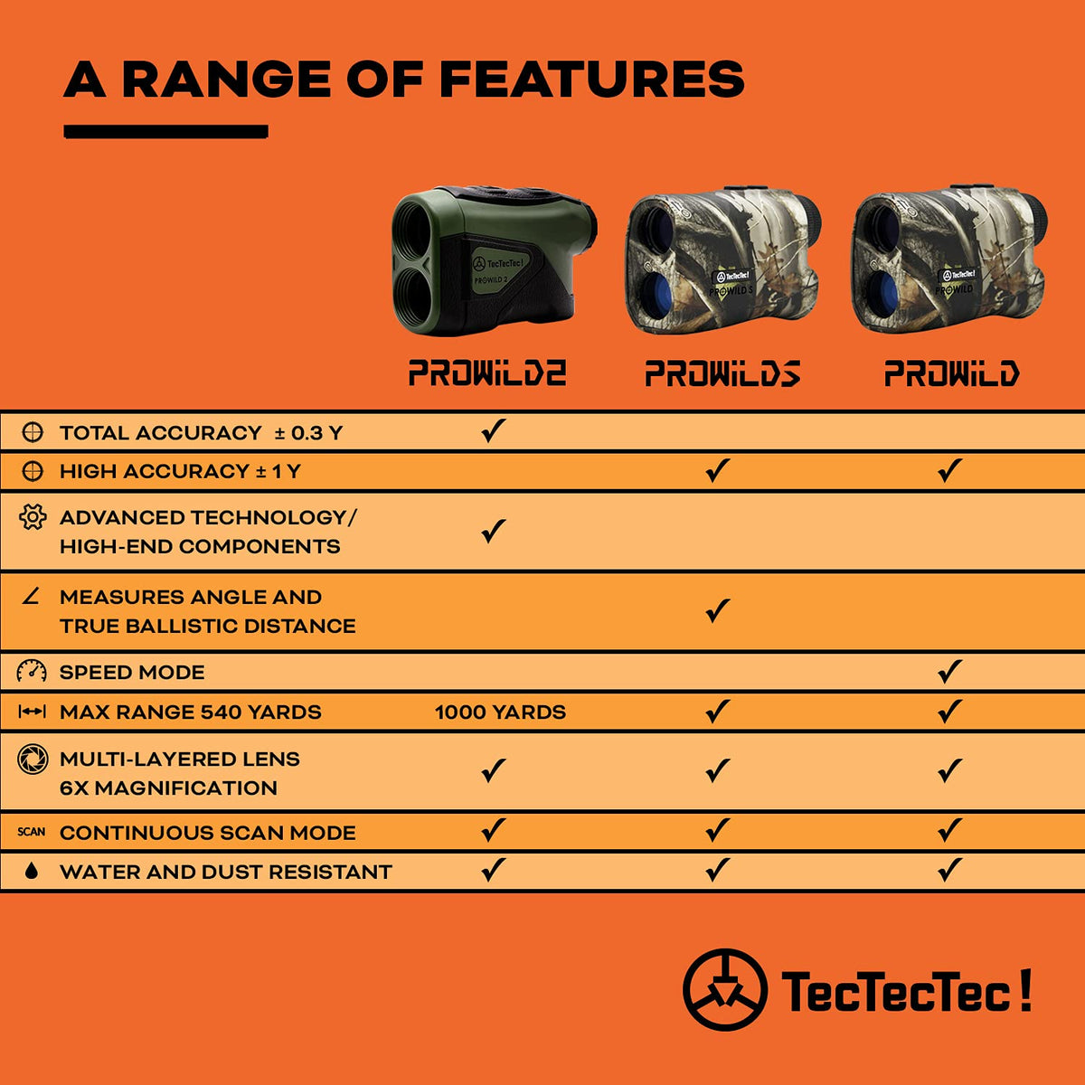 Tectectec Prowild 2 High Accuracy Laser Rangefinder For Hunting With Range Scan, Speed Mode, Cr2 Battery, And Normal Measurement