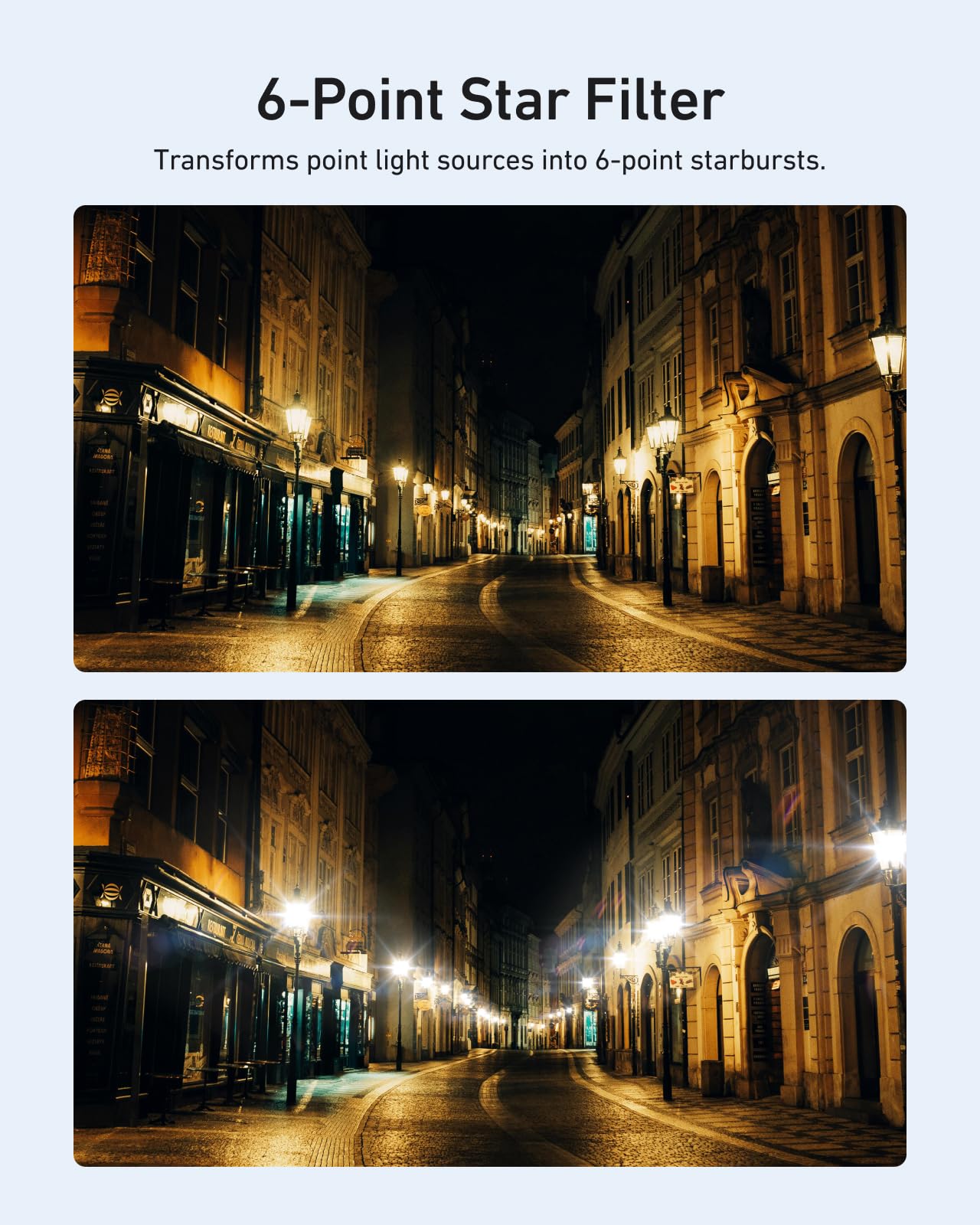 Telesin 67Mm 6-Line Star Filter, Dslr Camera Lens, Multi-Layer Nano-Coated Glass, Ar&Af Coating, Starburst Effect, Water & Finge