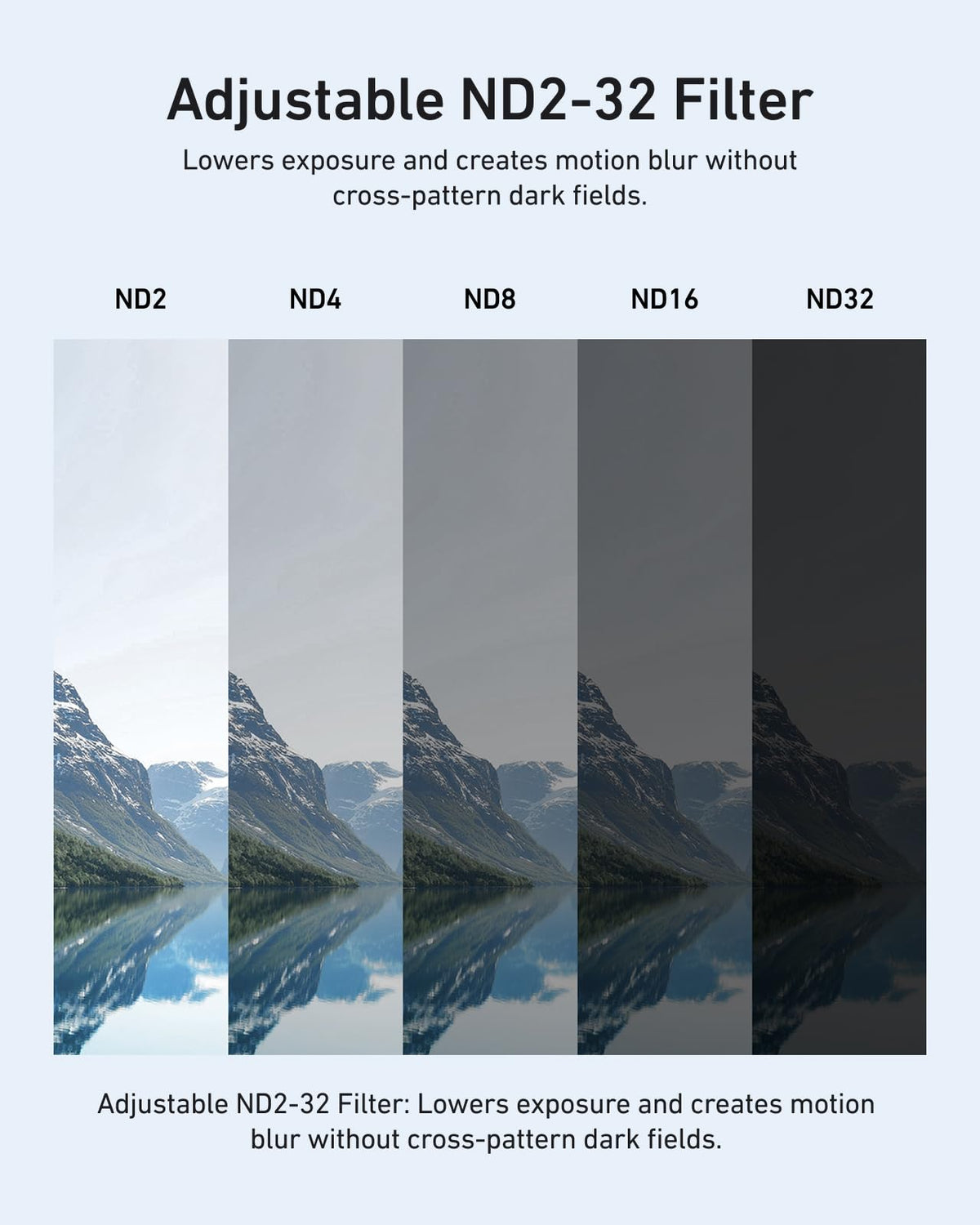 Telesin 67Mm Variable Nd2-32 Filter, Dslr Camera Lens, Multi-Layer Nano-Coated Glass, Ar&Af Coating, No X Pattern, Long Exposure
