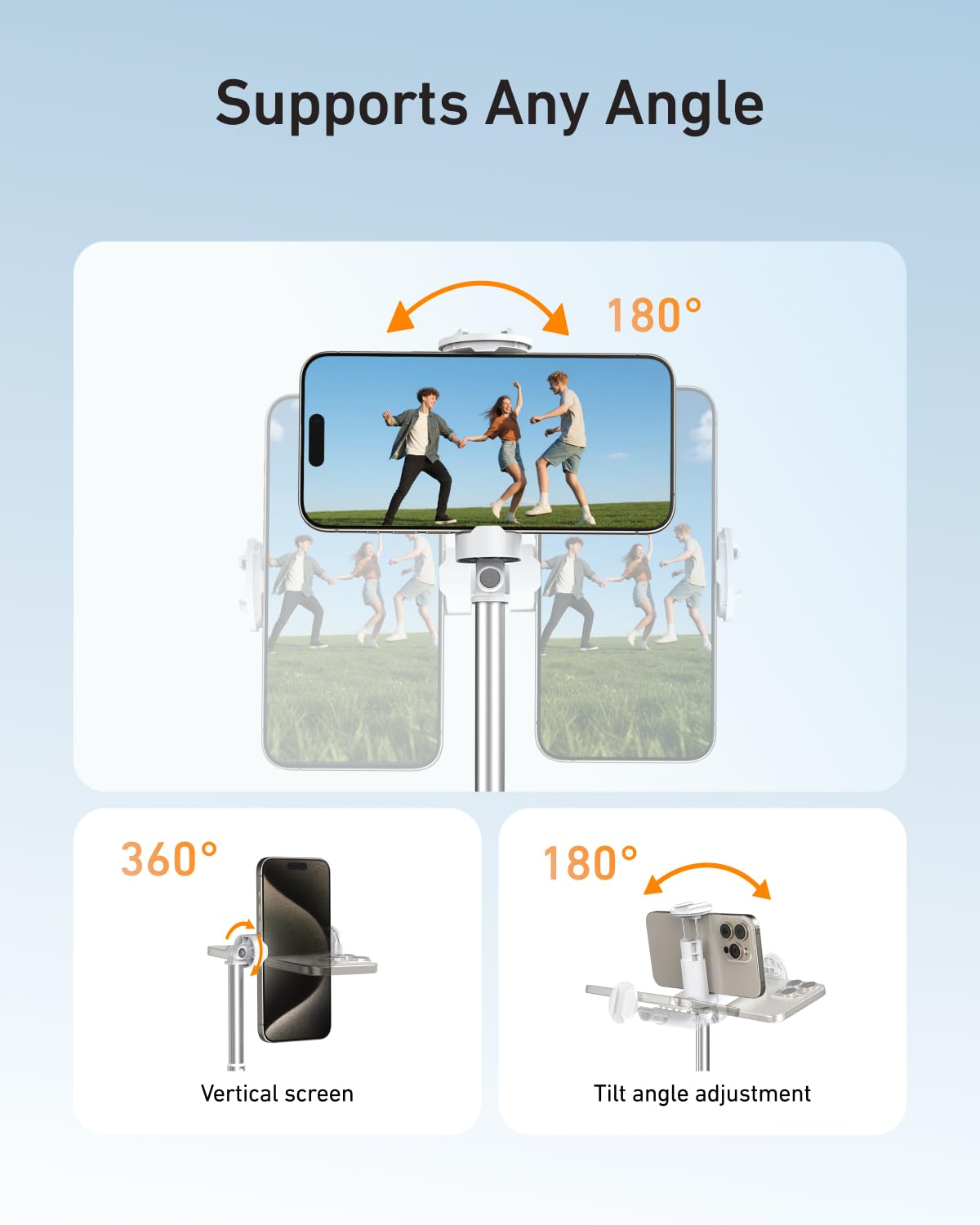 Telesin 70'' Automatic Selfie Stick Tripod | Gravity-Activated Auto-Open Phone Stand, Magnetic Bluetooth Remote & Ultra Wide-Angle | 360 Adjustable Windproof Travel Phone Stand For Iphone/Android