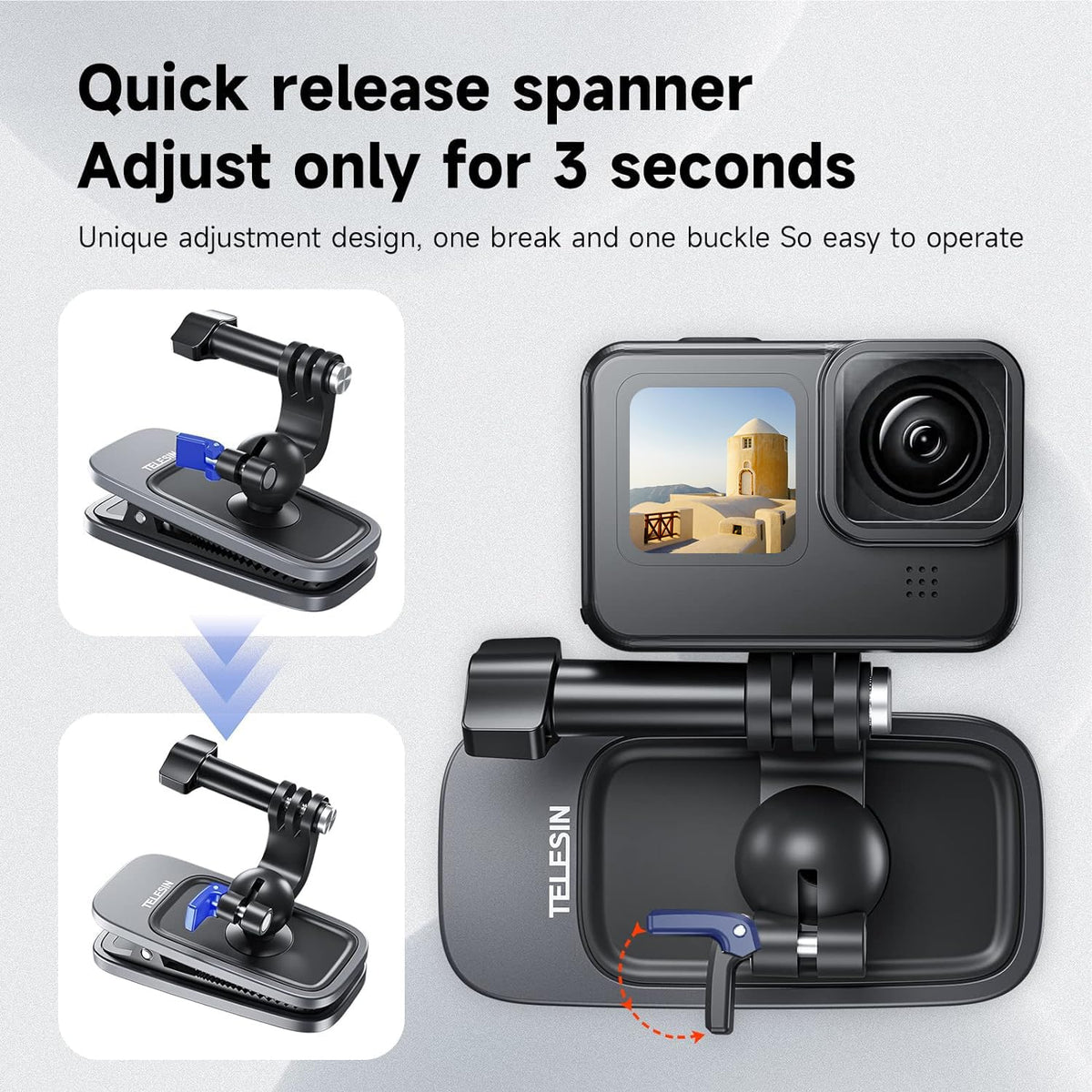 Telesin Backpack Clip Mount 360 Swivel Ball Joint Shoulder Bag Belt Strap Mounts Accessories For Gopro 13 12 11 10 9 8 7 6 5 Insta 360 X3 Ace Pro Dji Action 3 4 Osmo Pocket 3 Bike Motorcycle Accessory
