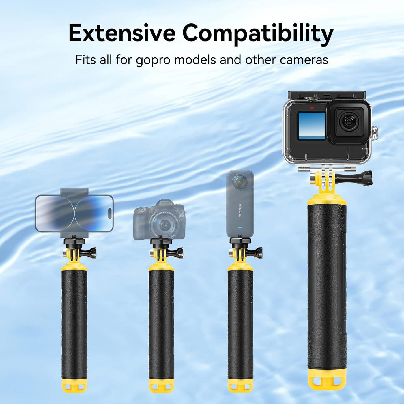 Telesin Floating Hand Grip For Gopro Hero 13 12 11 10 9 8 7+ Series, Dji, Insta360 Most Action Cameras, Underwater Selfie Stick Suitable For Surfing, Snorkeling, Underwater Shooting