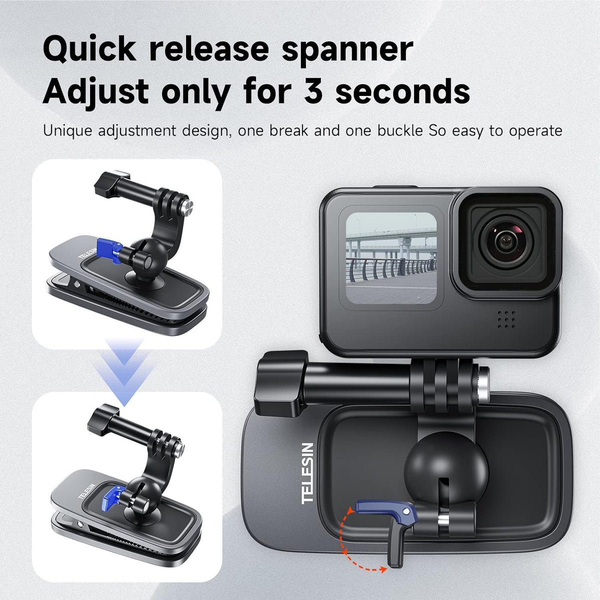 Telesin Magnetic Mount Backpack Clip With Phone Holder For Gopro Insta360 Iphone Accessories For Go Pro Hero 13 12 11 10 9 8 7 Insta 360 X3 Go3 Ace Pro Dji Action 5 Pro 4 3 Pocket 3 Bike Motorcycle