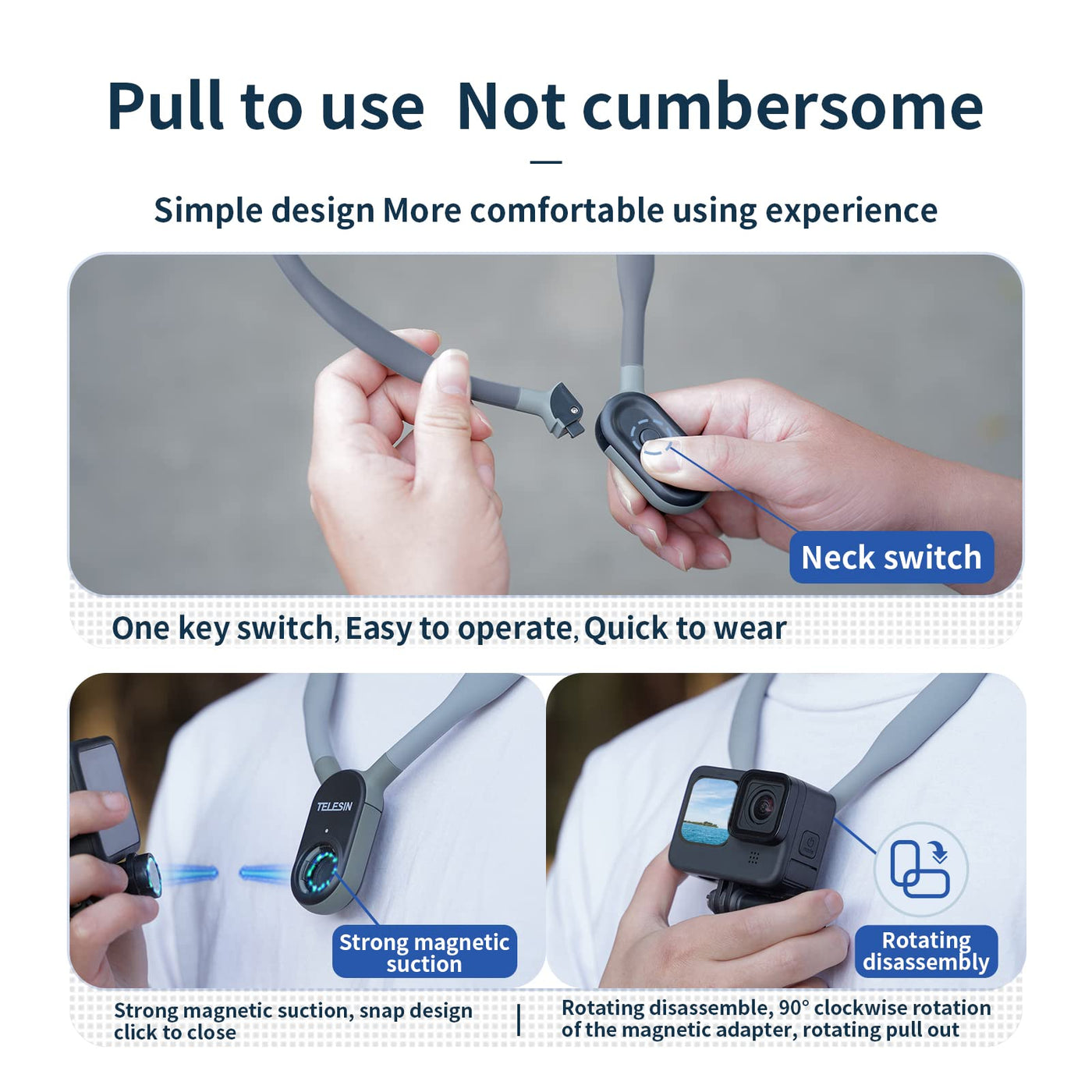 Telesin Magnetic Neck Mount Necklace Holder Lanyard Strap, Chest View Pov Selfie Video Vlog Body Attach For Gopro Max 12 11 10 9 8 7 Insta360 X3 X4 Go3 Ace Pro Dji Action 3 4 Osmo Pocket 3 Accessories
