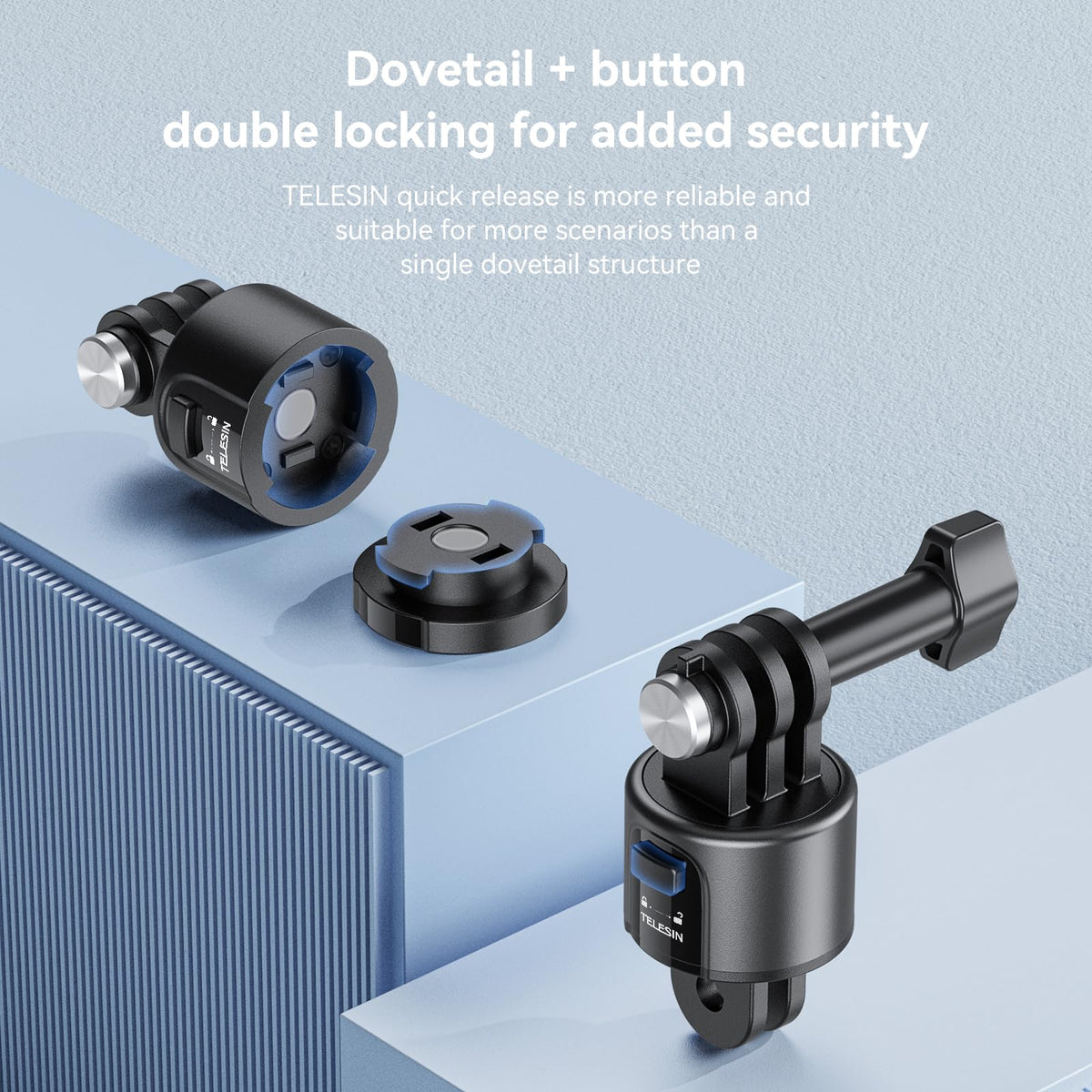 Telesin Mount Adapter Base For Gopro Accessories, Quick Release Magnetic Camera Tripod Mounts For Dji Action Osmo 3/4/5 Pro Pocket Selfie Stick Backpack Head Chest Neck Bike Motorcycle Helmet Mounting
