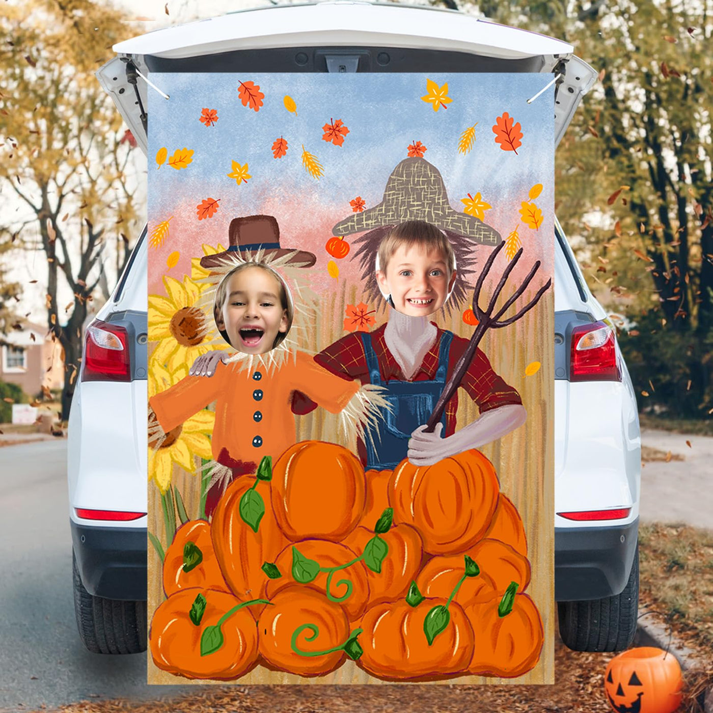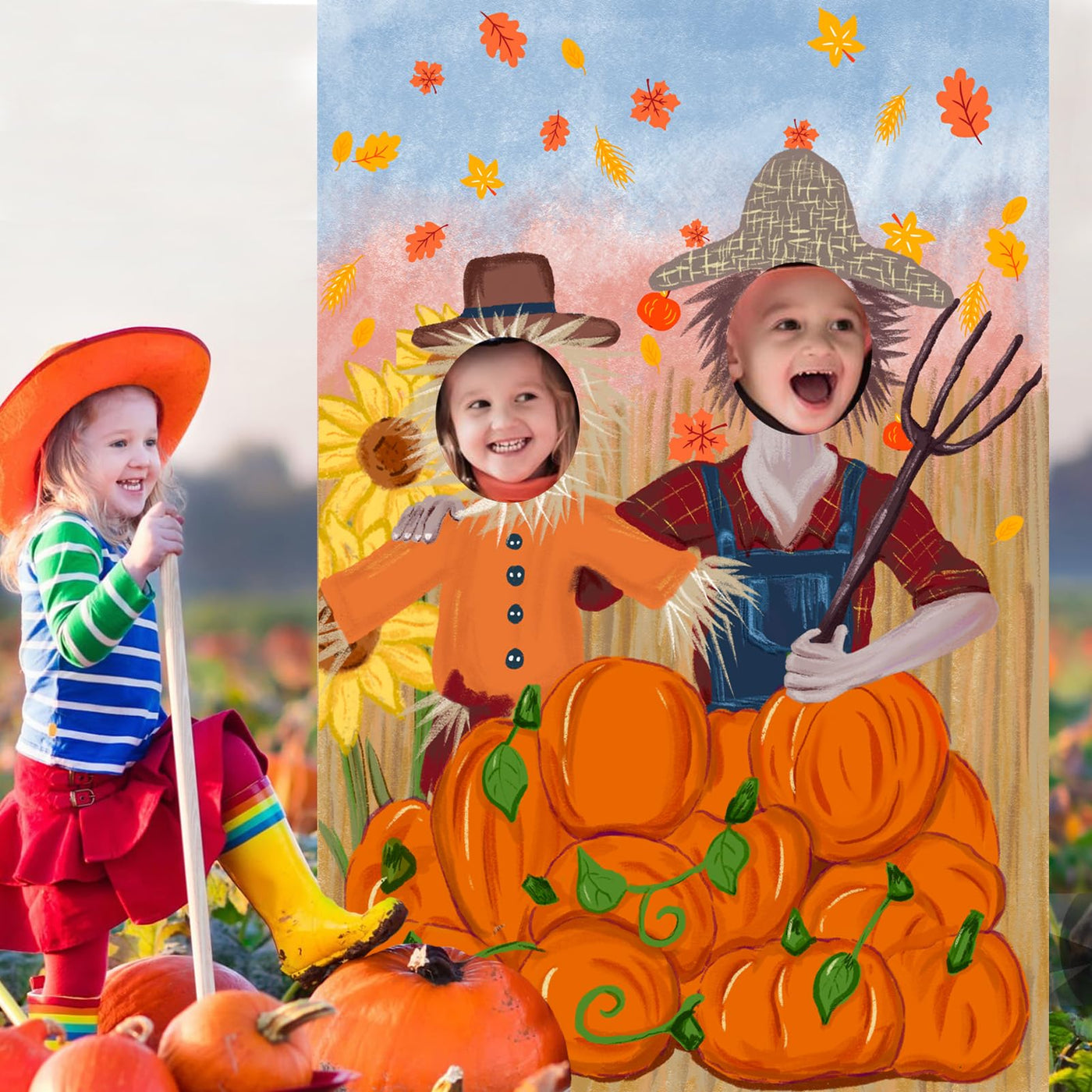 Thanksgiving Photography Backdrop Pumpkin Photo Background Fall Harvest Decor Autumn Events Photo Props Scarecrow Fall Party Fes