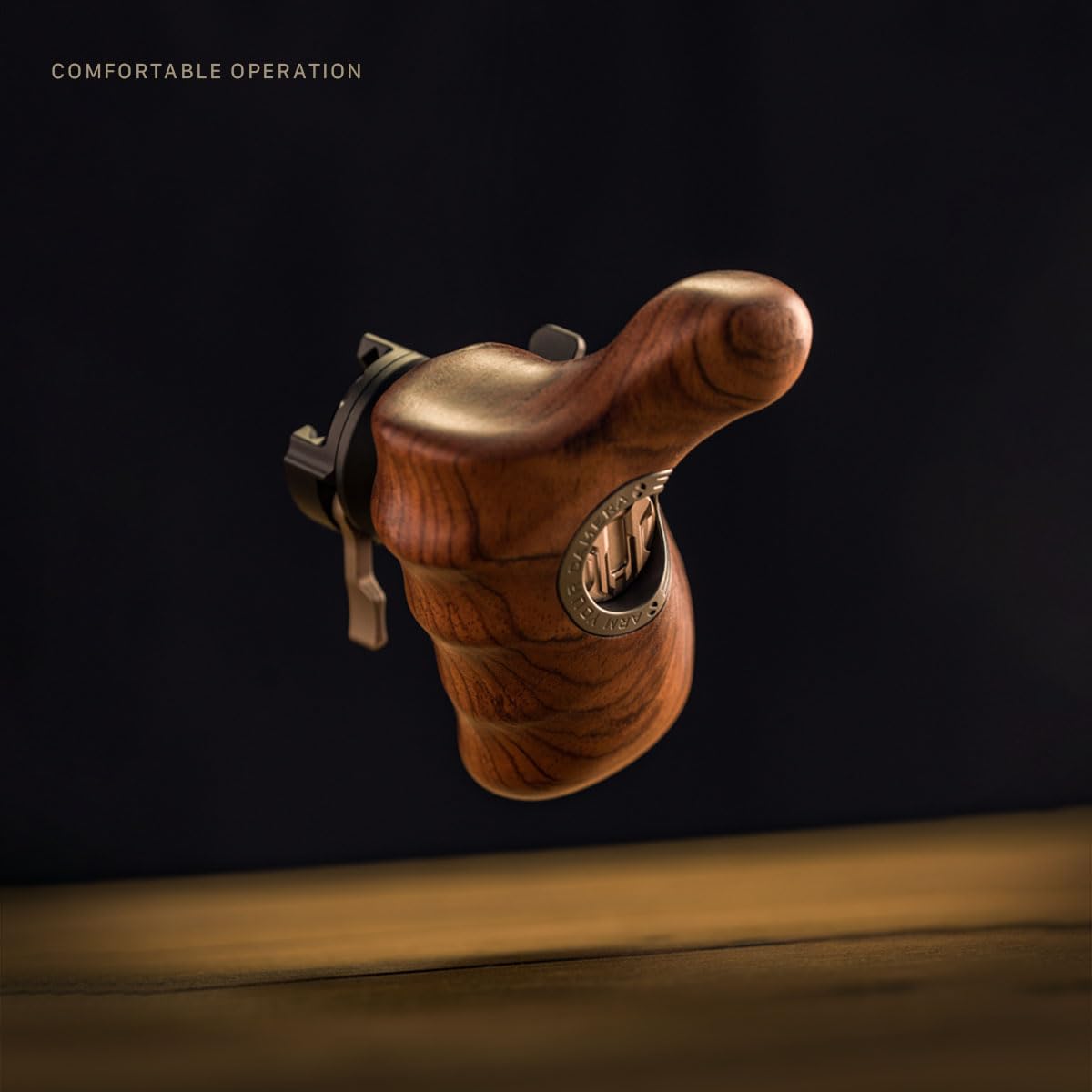 Tilta Advanced Side Wooden Handle | Black Walnut Wood & Aluminum Alloy Build | Quick Release Button | Left Side Handle (1/4 20' With Locating Pins Type Xi)