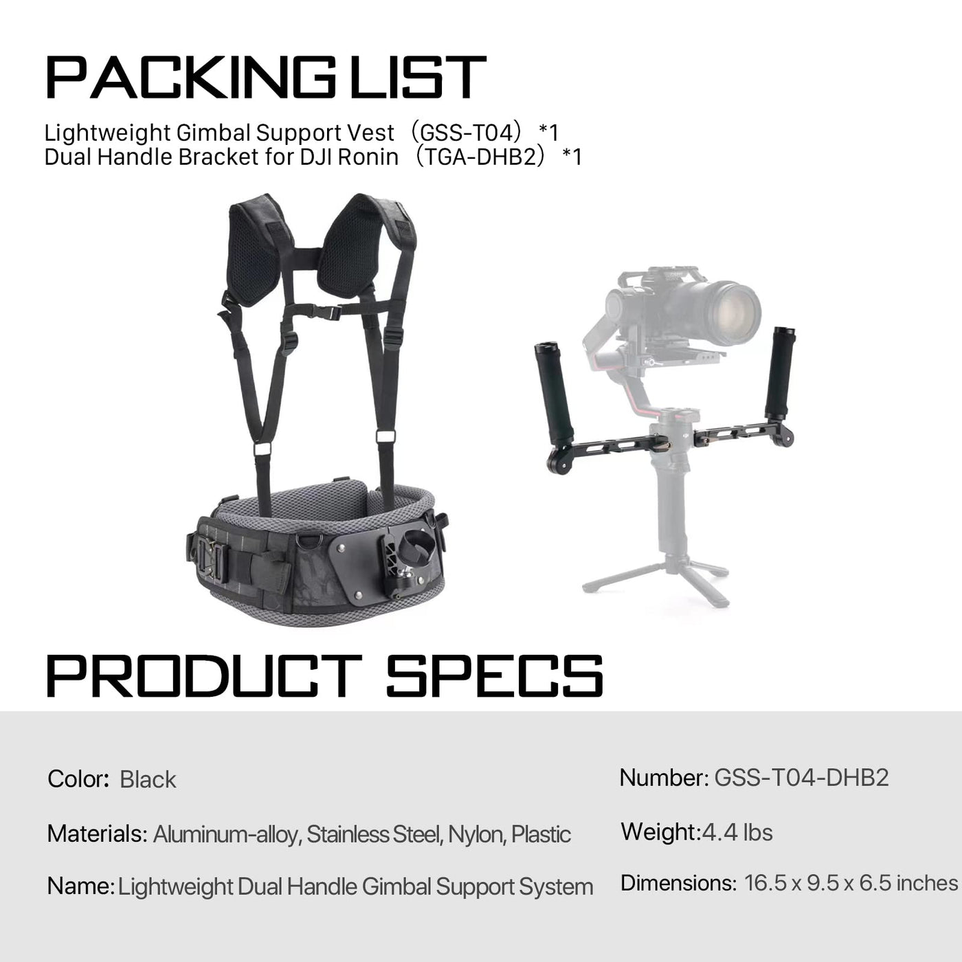 Tilta Lightweight Dual Handle Gimbal Support System | Compatible With Dji Ronin Rs3 Pro/ Rs4/ Rs4 Pro | Ergonomic Support For Long Shoots | Gss T04 Dhb2 (Support Vest With Handles)